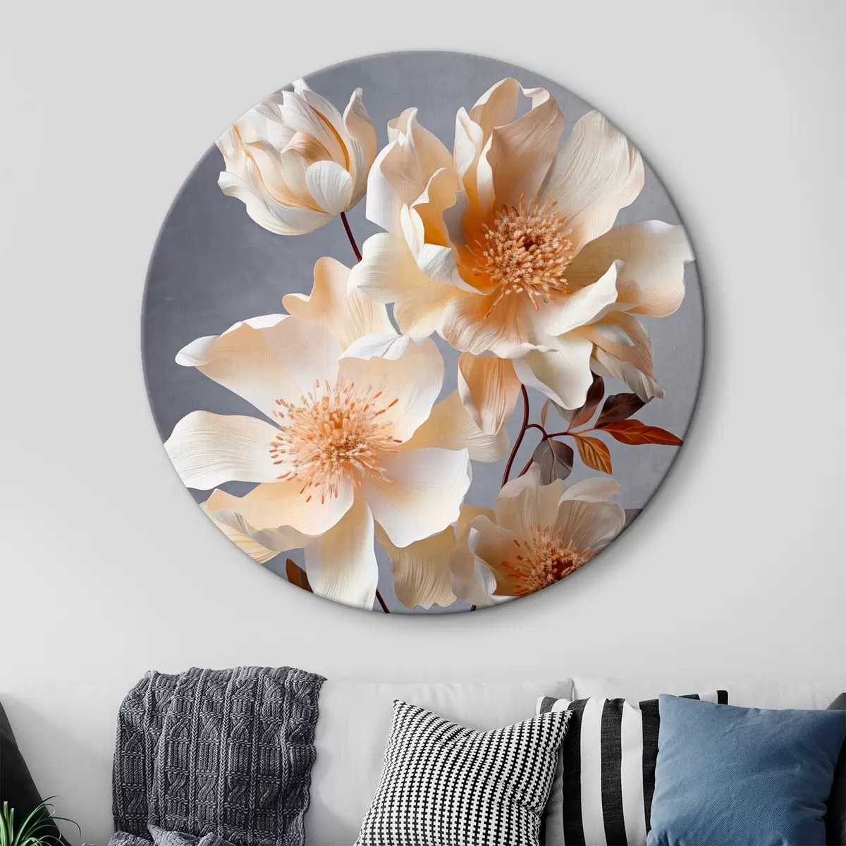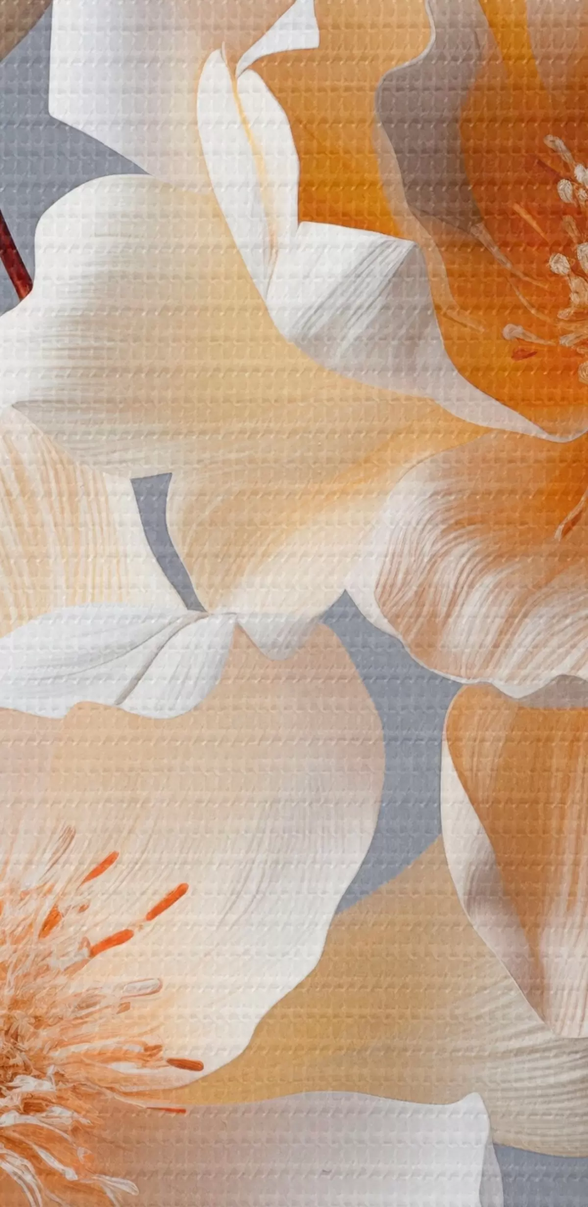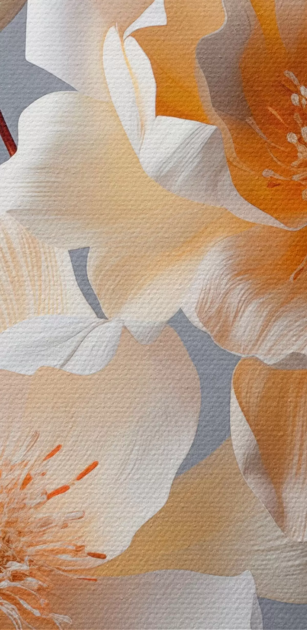 Obrázok Textúrované kvety s oranžovými piestikmi a oranžovými listami na sivom pozadí, mäkké svetlo, elegantné, detailné, realistické Nr r45181