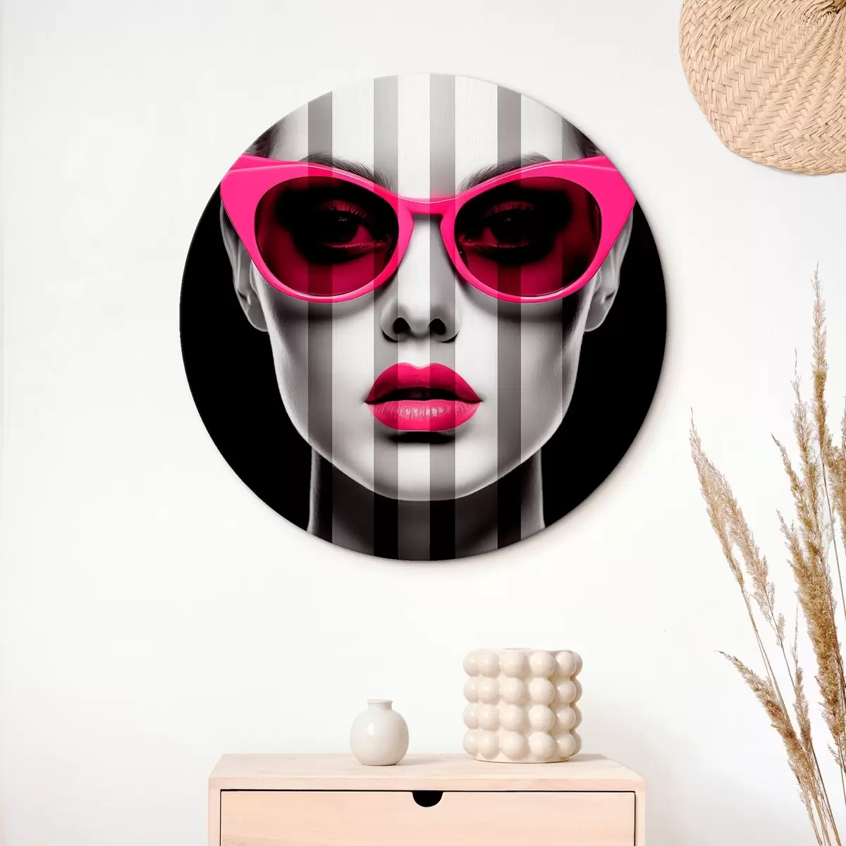 Obrázok Žena s ružovými okuliarmi s čiernymi a bielymi pruhmi Nr r45315