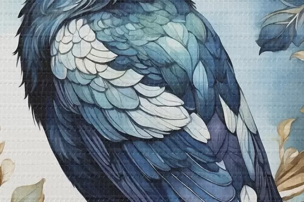 Obrázok Modrý vták na vetve s akvarelovými listami Nr r45483