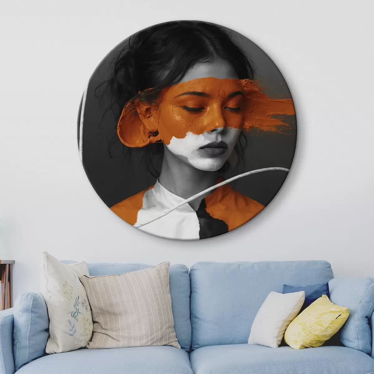 Obrázok Portrét dievčaťa s abstraktným oranžovým obrazom Nr r45495