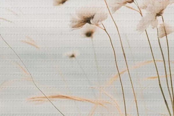 Obrázok Trochu bavlnenej trávy a inej suchej trávy pred rozmazaným morom, jemná a tlmená paleta farieb Nr r45562