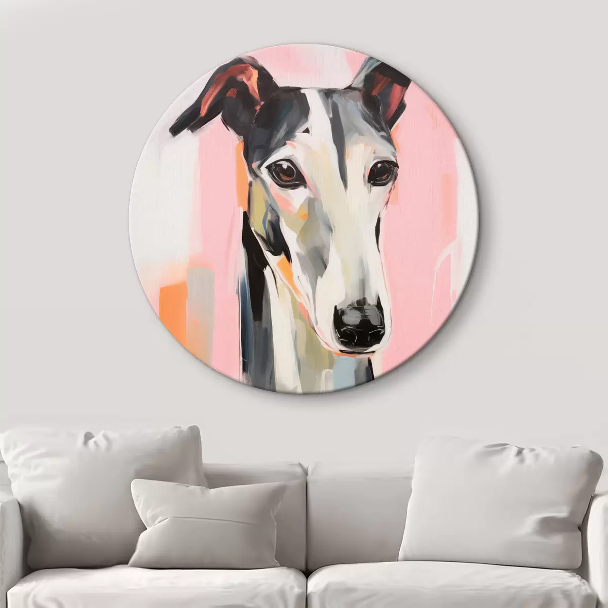 Obrázok Chrt na pozadí ružových, oranžových a bielych ťahov štetcom Nr r45566