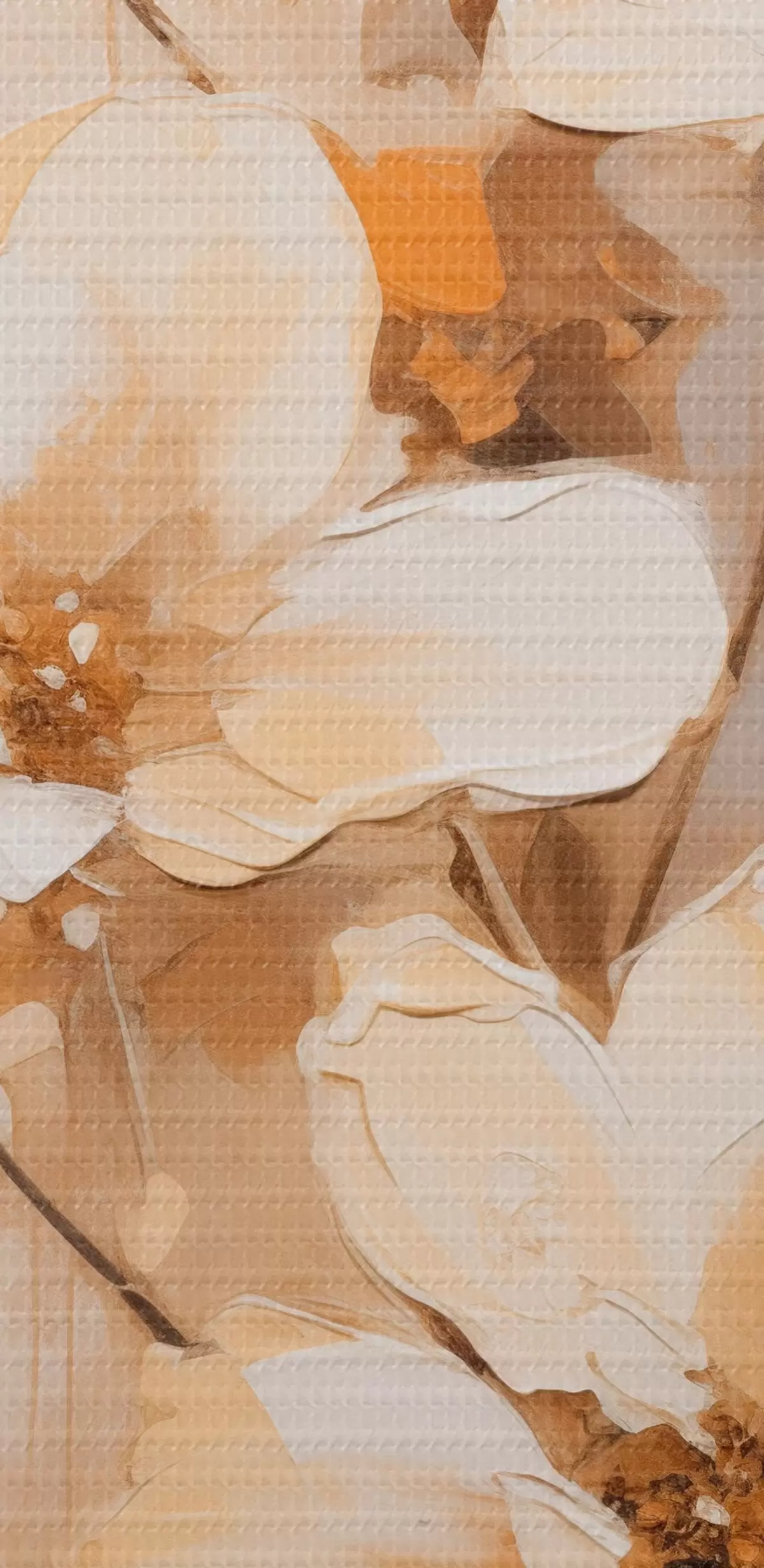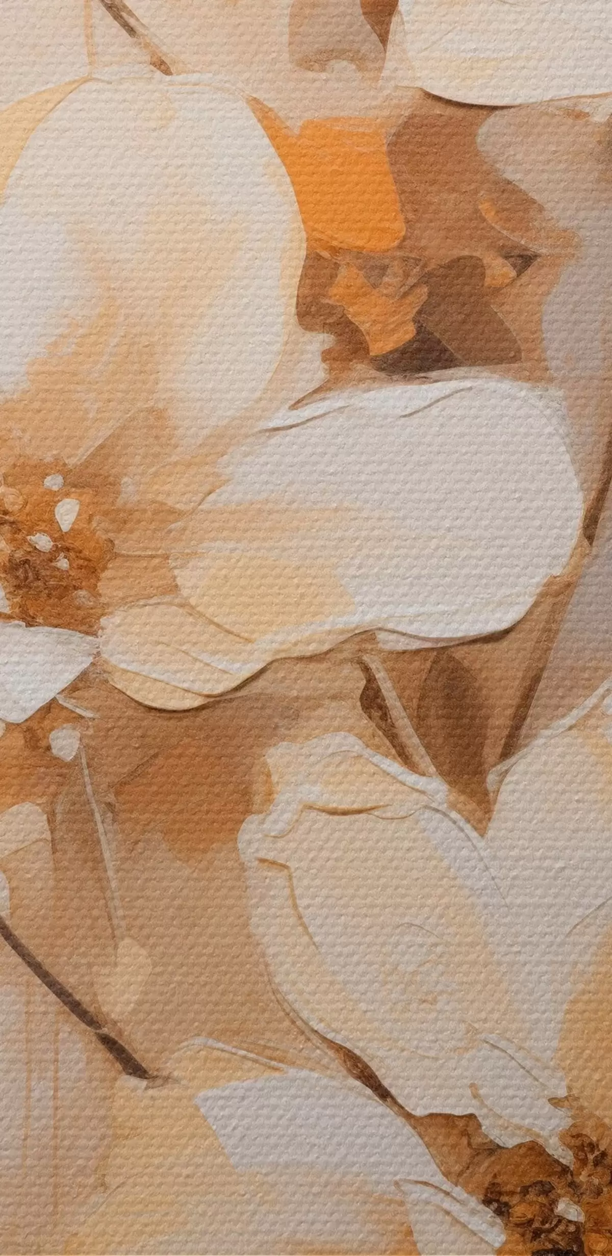 Obrázok Biele kvety s oranžovými listami, jemné ťahy štetcom, kvetinové aranžmá, botanické umenie Nr r45574