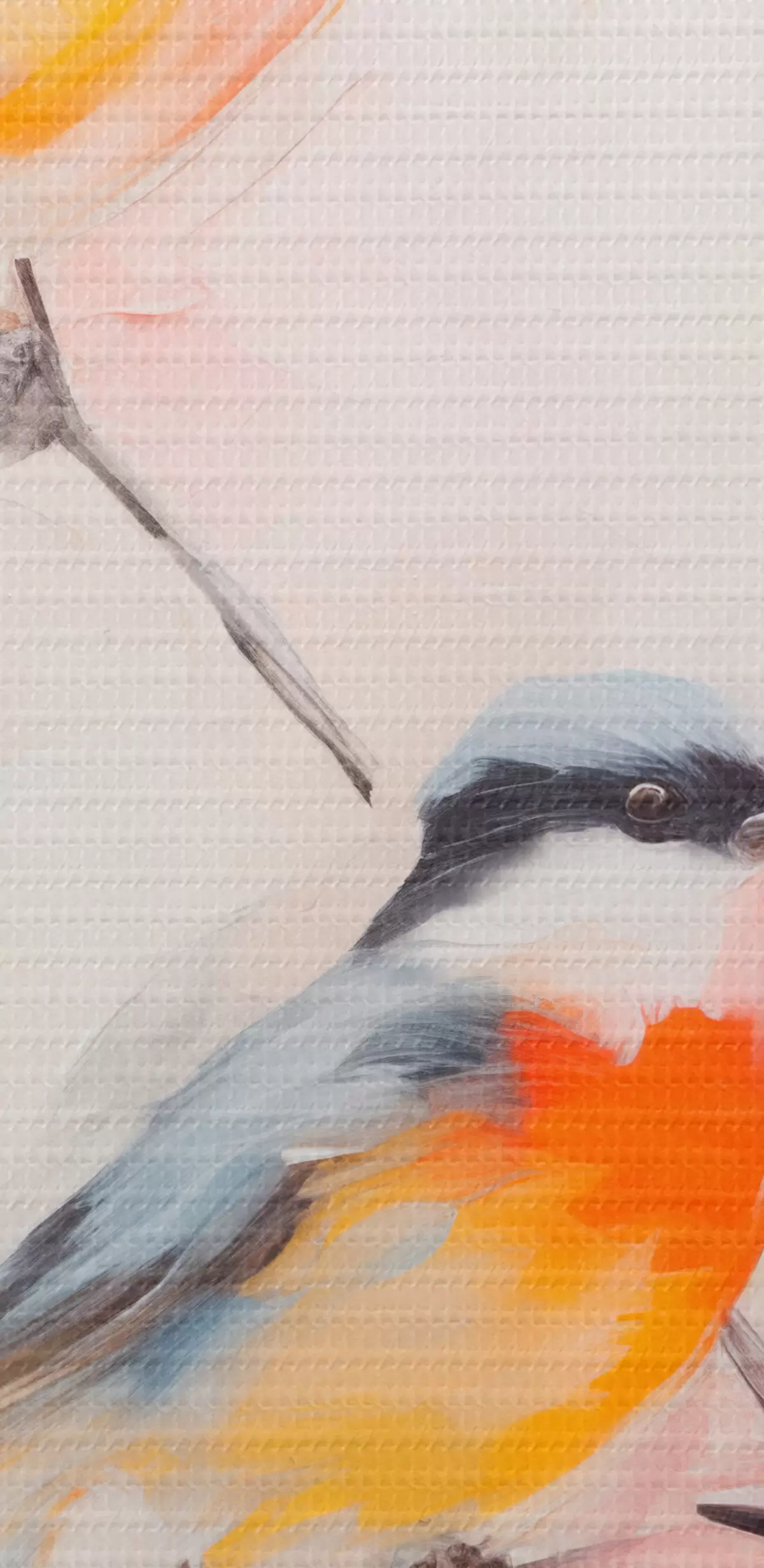 Obrázok Vtáky sediace na konároch , jemné pastelové farby, svetlé pozadie s ružovými a bielymi odtieňmi Nr r45577