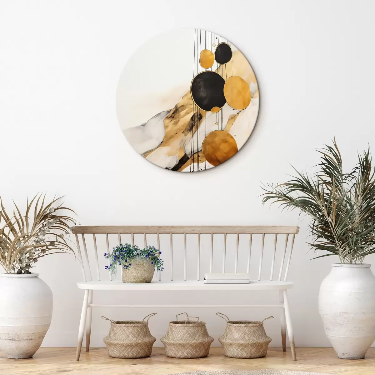 Obrázok Abstraktné oranžové a čierne kruhy na svetlom pozadí Nr r45693
