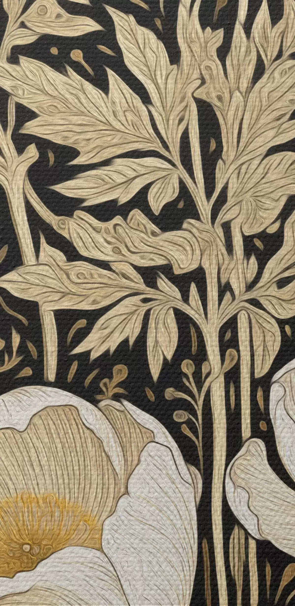 Obrázok Krémové kvety a trávy na čiernom pozadí Nr r45816