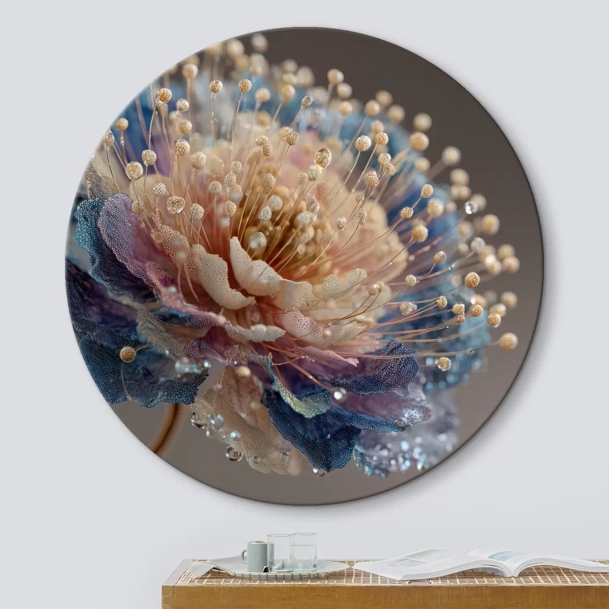 Obrázok Perleťový kvet s kvapkami rosy, broskyňovo-modrými okvetnými lístkami Nr r45911