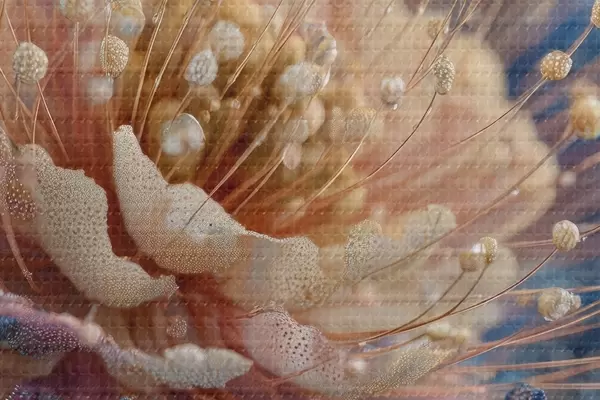 Obrázok Perleťový kvet s kvapkami rosy, broskyňovo-modrými okvetnými lístkami Nr r45911