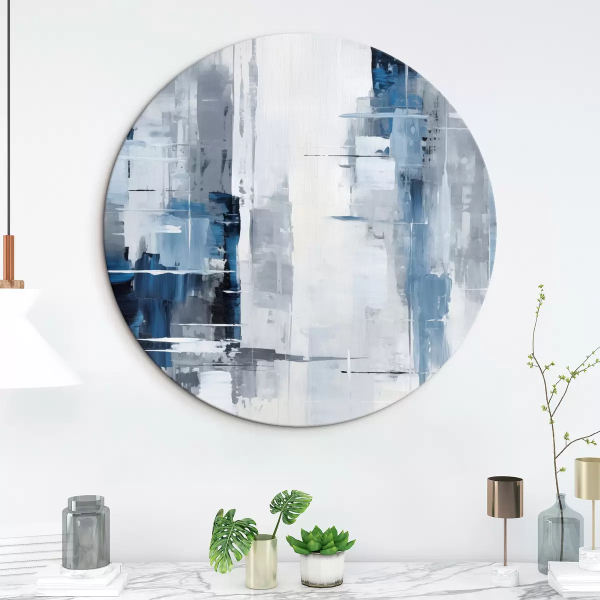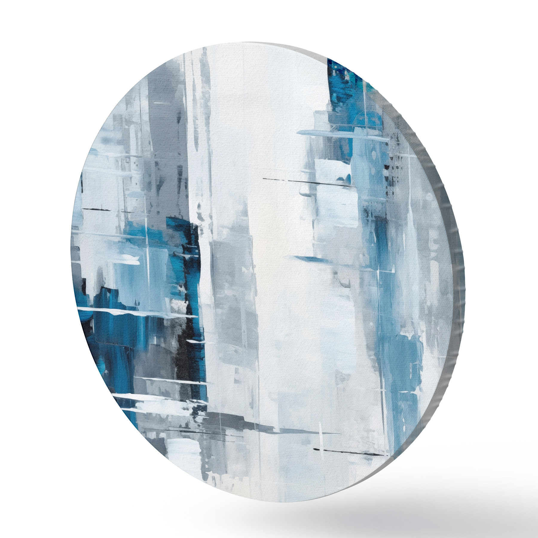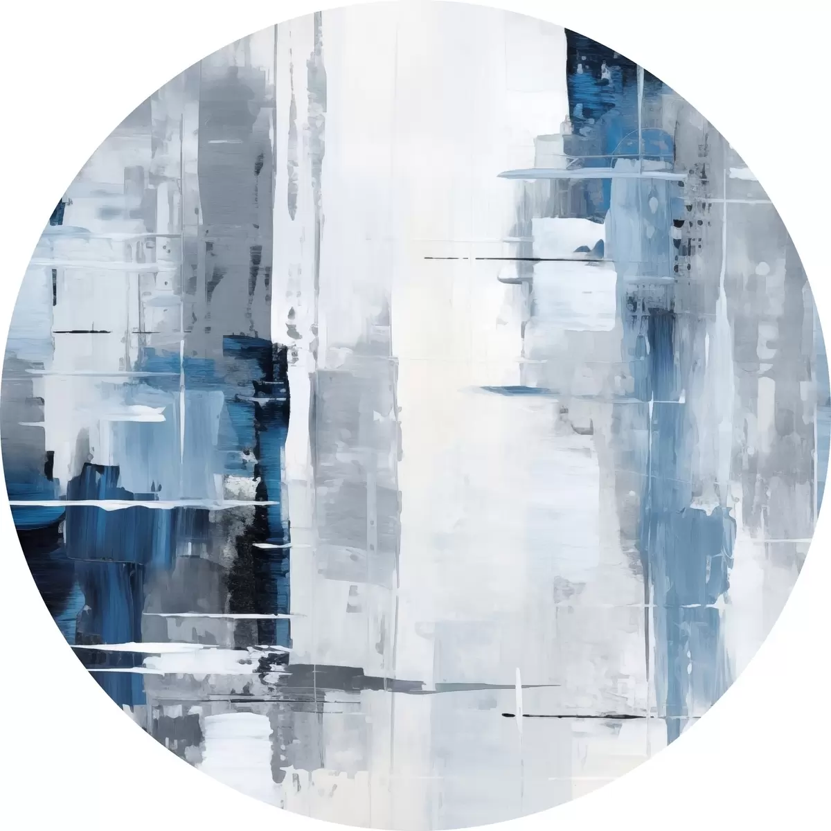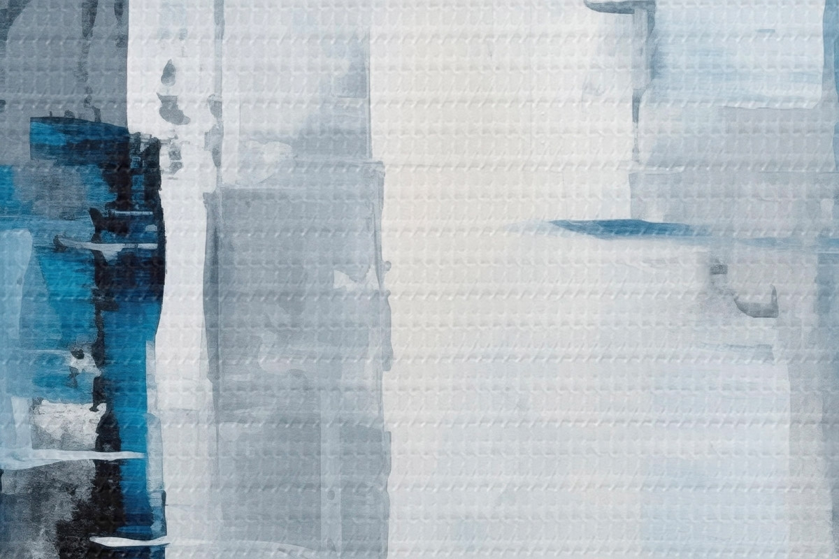 Obrázok Abstraktná maľba s modrou, šedou a bielou farbou, vertikálnymi čiarami a geometrickými tvarmi Nr r45926