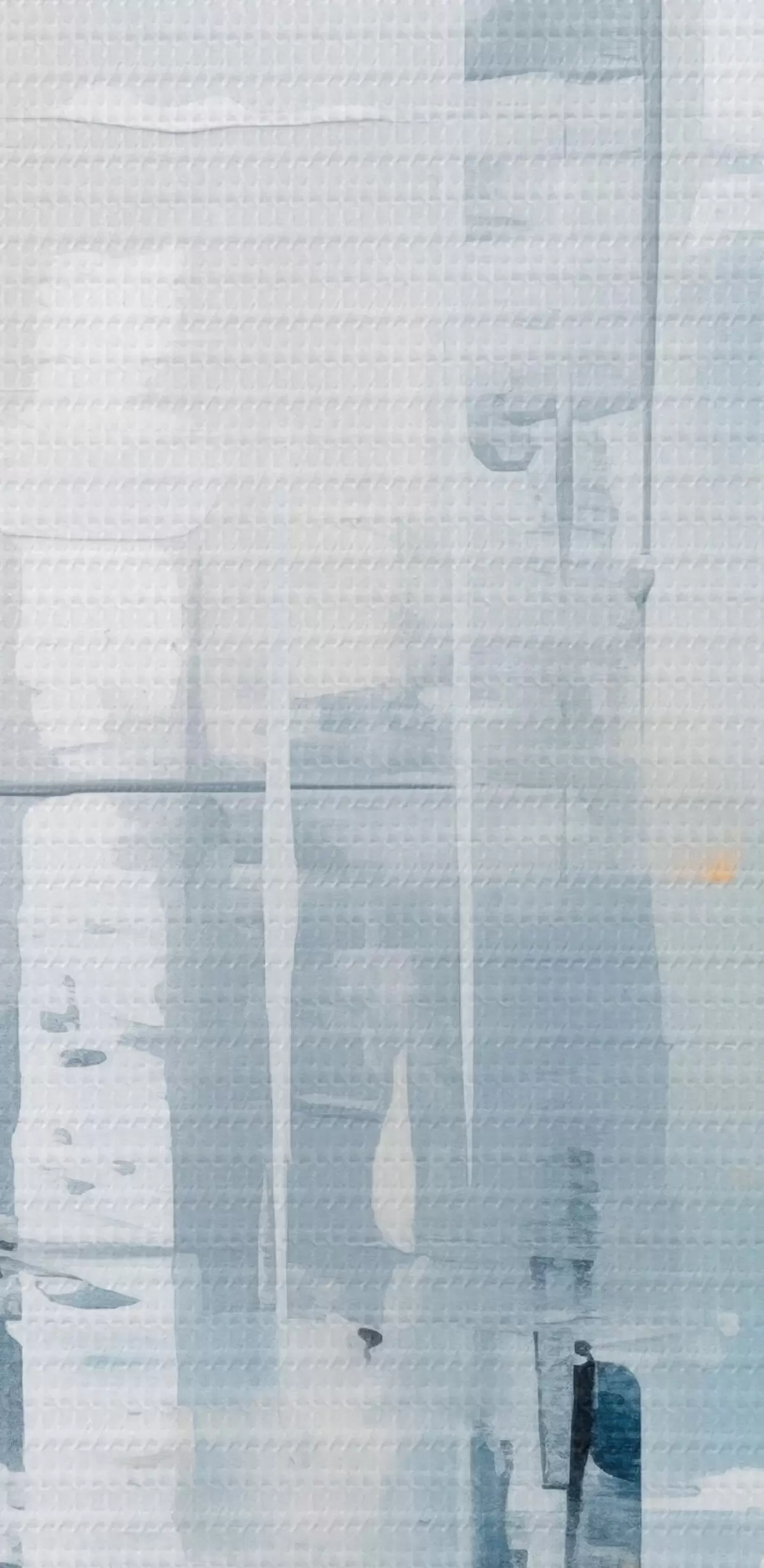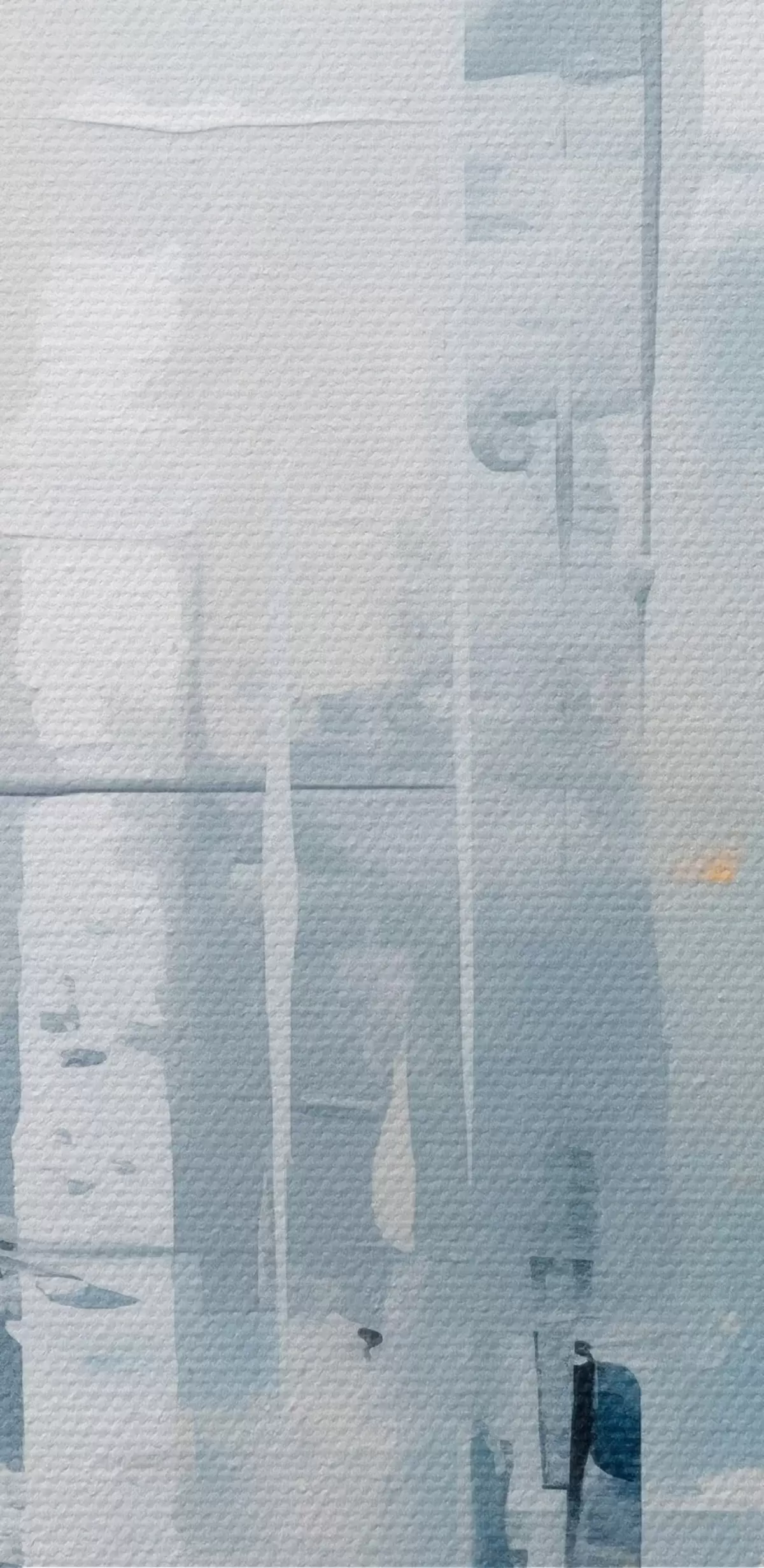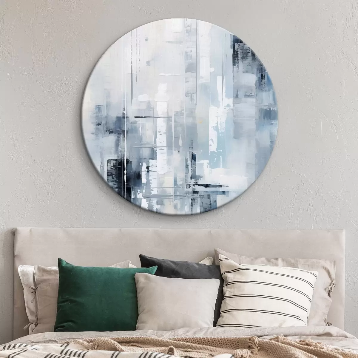 Obrázok Abstraktná maľba s modrou, šedou a bielou farbou, vertikálnymi čiarami a geometrickými tvarmi Nr r45927