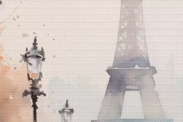 Obrázok Daždivý deň v Paríži s Eiffelovou vežou v pozadí a retro pouličnými lampami Nr r45930