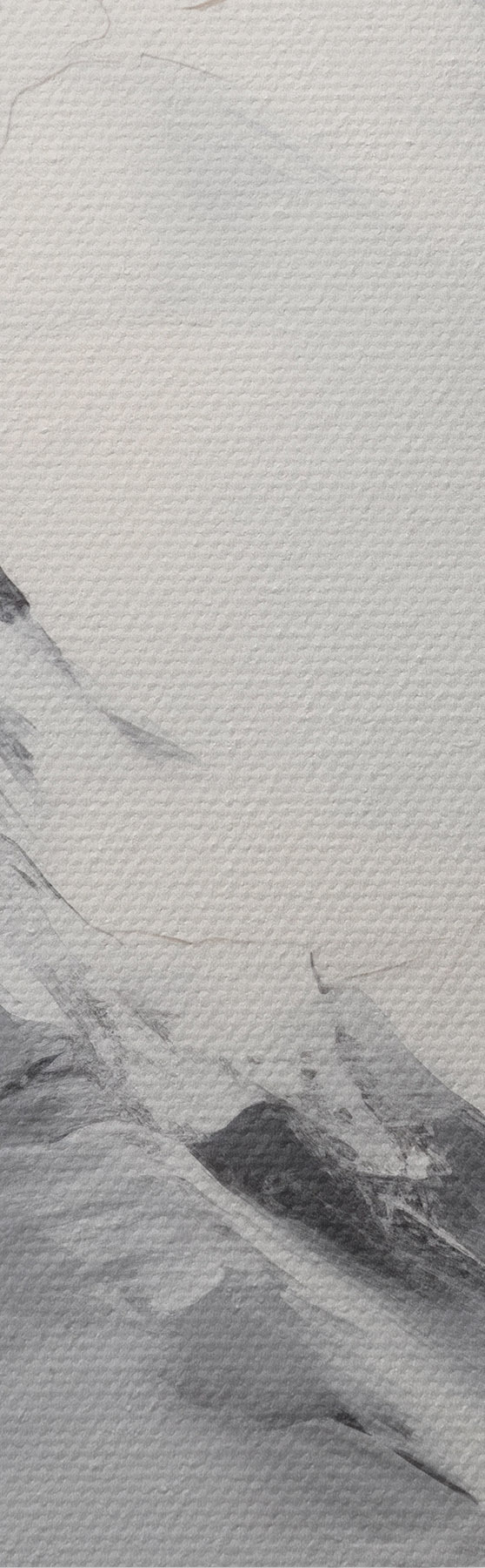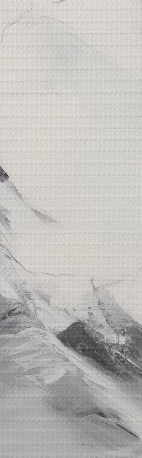 Obrázok Zasnežené horské vrcholy so sivými tieňmi, sivá obloha, ťahy štetcom, textúrované, minimalistické Nr r45933