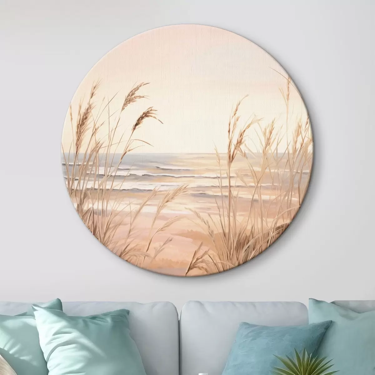 Obrázok Pampasová tráva s pastelovo oranžovou farebnou paletou, svetloružová obloha, pokojná krajina Nr r45935