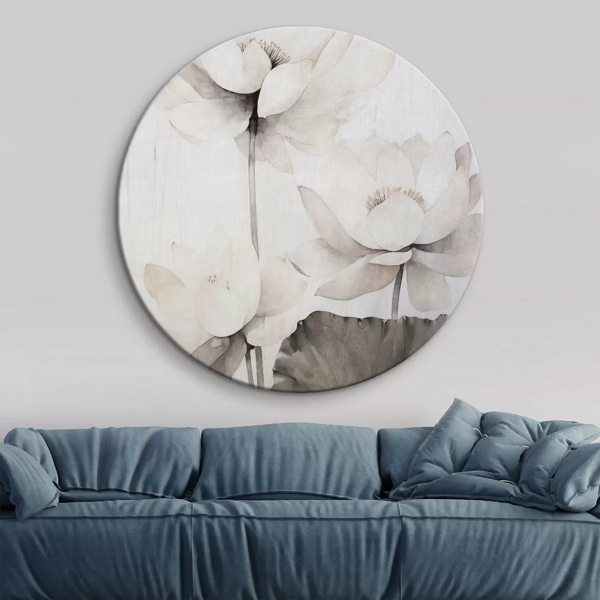 Obrázok Biele textúrované kvety lotosu s tmavými listami, svetlé pozadie, minimalistický dizajn Nr r45936