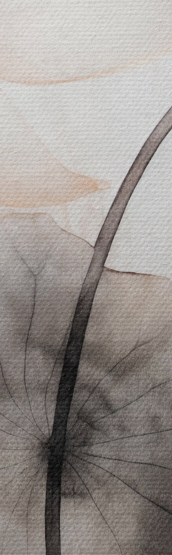 Obrázok Biele textúrované kvety lotosu s tmavými listami, svetlé pozadie, minimalistický dizajn Nr r45937