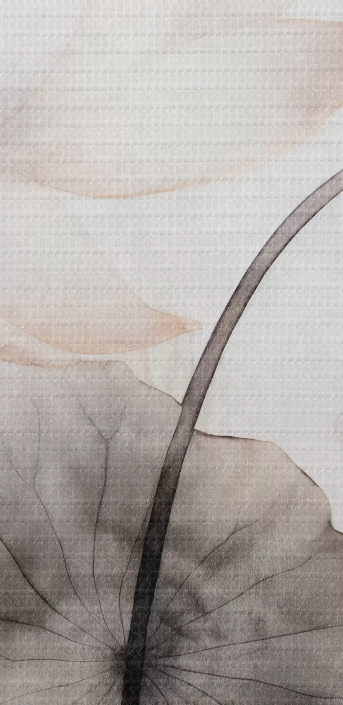 Obrázok Biele textúrované kvety lotosu s tmavými listami, svetlé pozadie, minimalistický dizajn Nr r45937