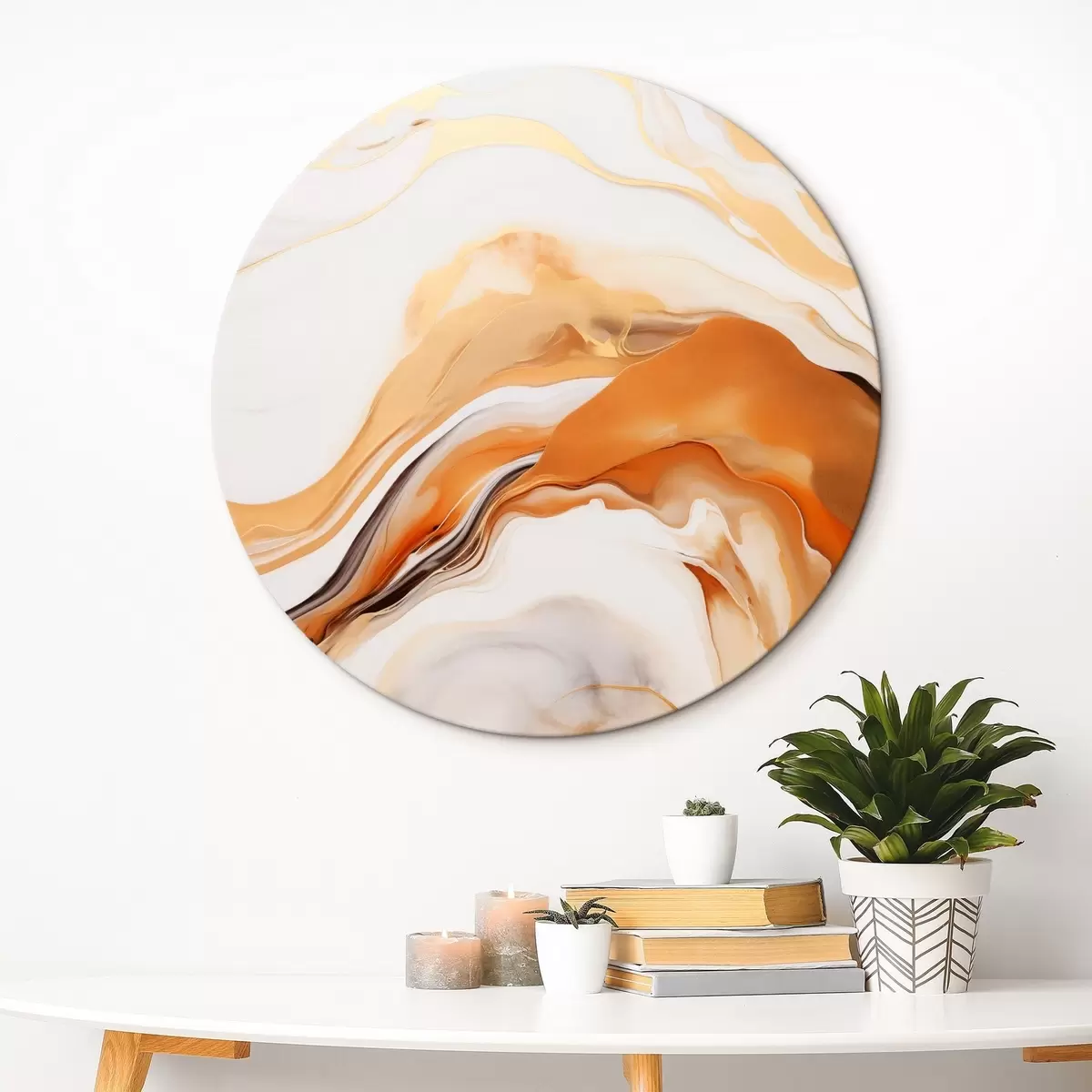 Obrázok Abstraktná maľba s plynulými tvarmi v odtieňoch bielej, oranžovej a hnedej, minimalistická Nr r45938