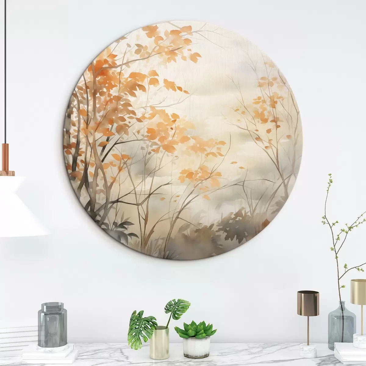 Obrázok Jesenné stromy s oranžovými listami a vetvami, jemný akvarelový štýl, jemné ťahy štetcom Nr r45941