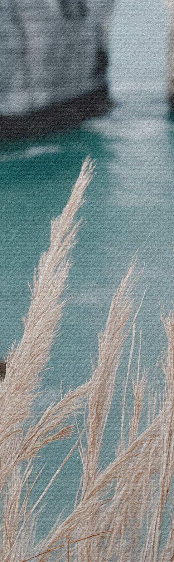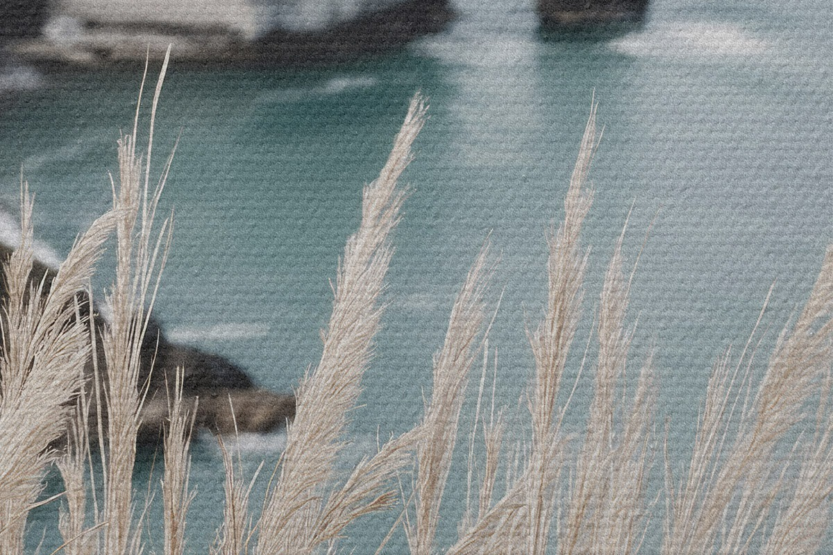 Obrázok More a skalný oblúk, pohľad cez suchú trávu Nr r46142