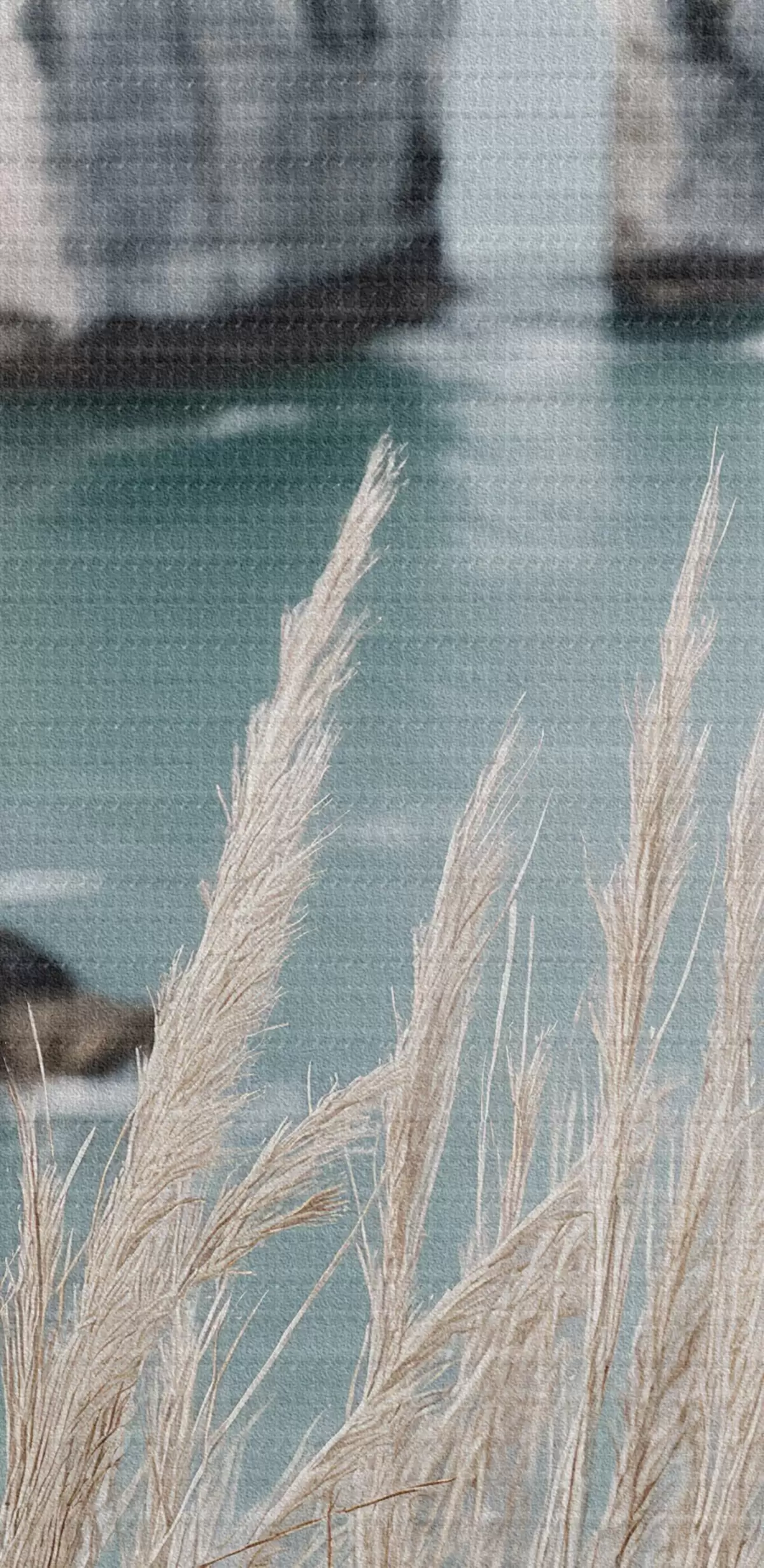 Obrázok More a skalný oblúk, pohľad cez suchú trávu Nr r46142