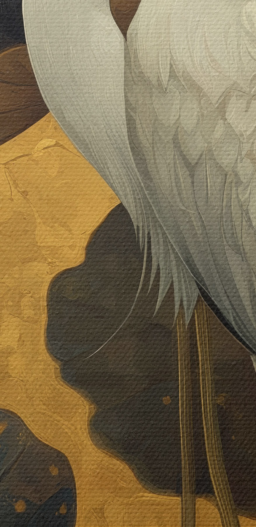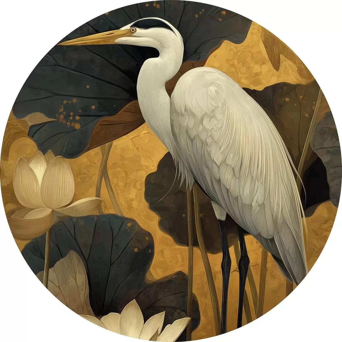 Obrázok Volavka medzi lotosmi na teplom pozadí Nr r46148