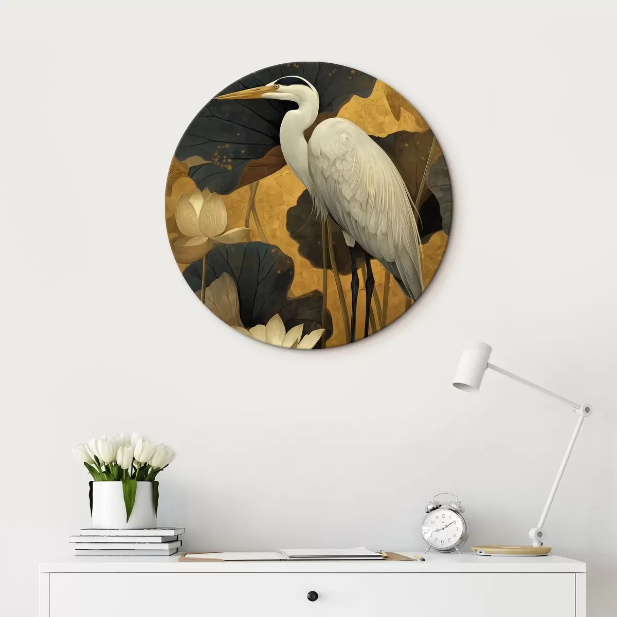 Obrázok Volavka medzi lotosmi na teplom pozadí Nr r46148