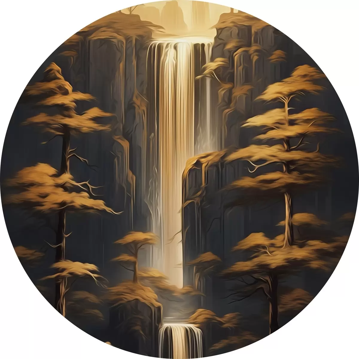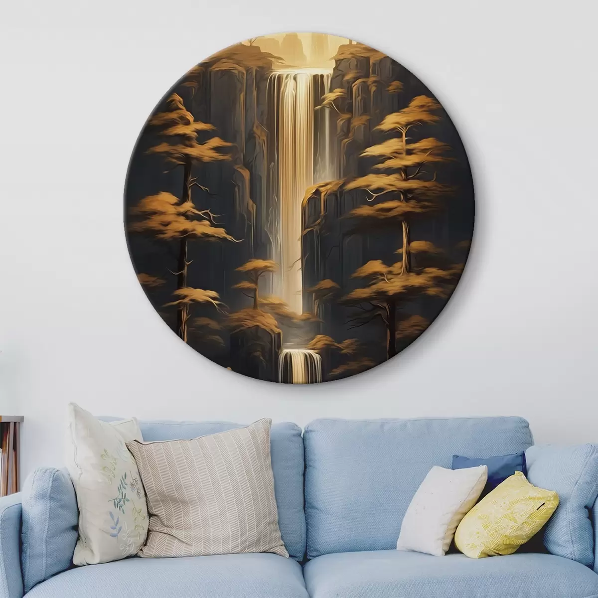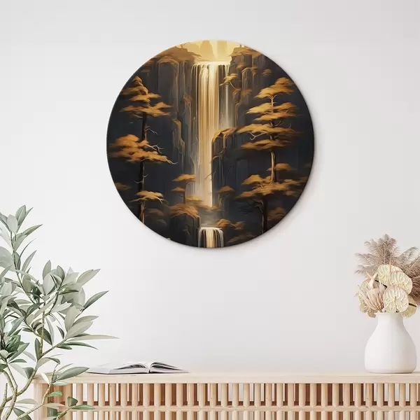 Obrázok Vysoké útesy s vodopádom a borovicami vo večernom svetle Nr r46151