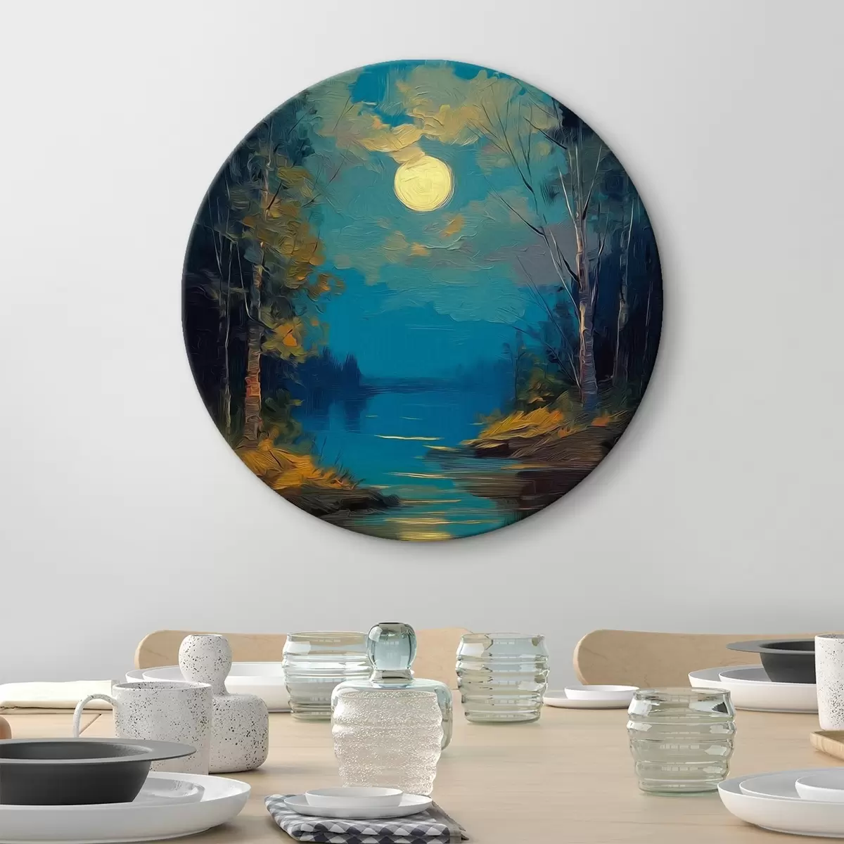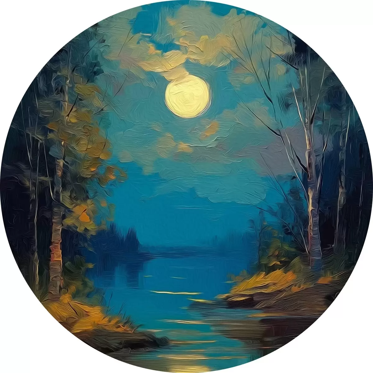Obrázok Mesiac nad pokojnou riekou medzi borovicami Nr r46164