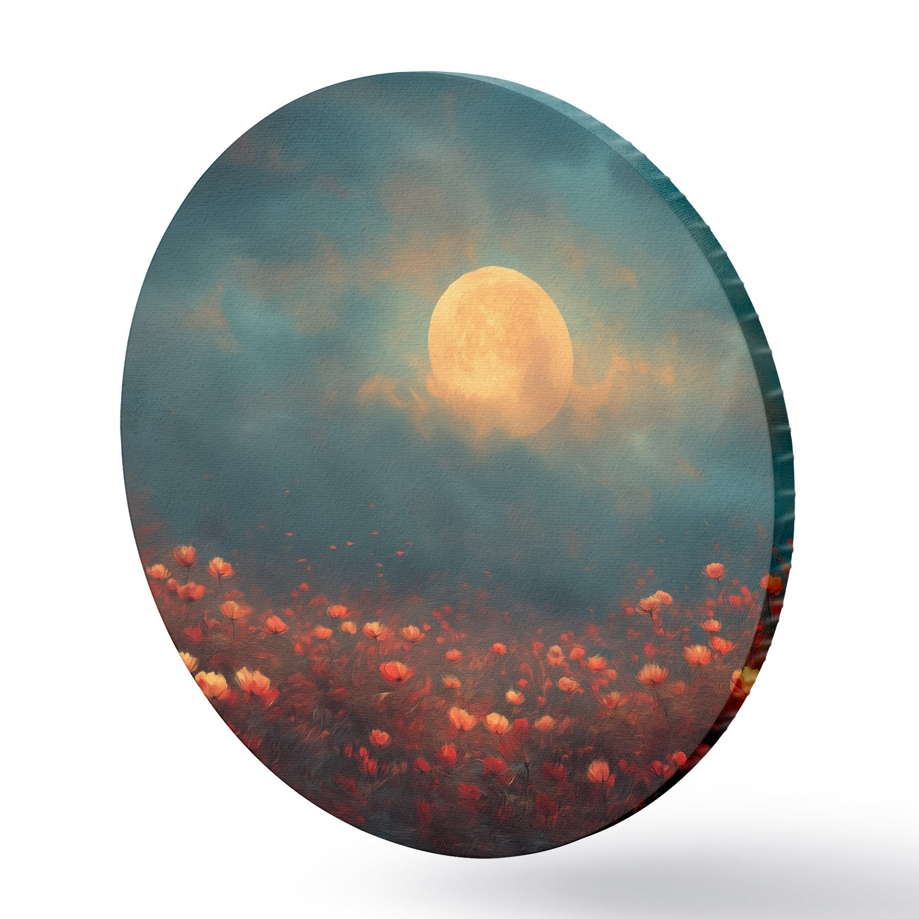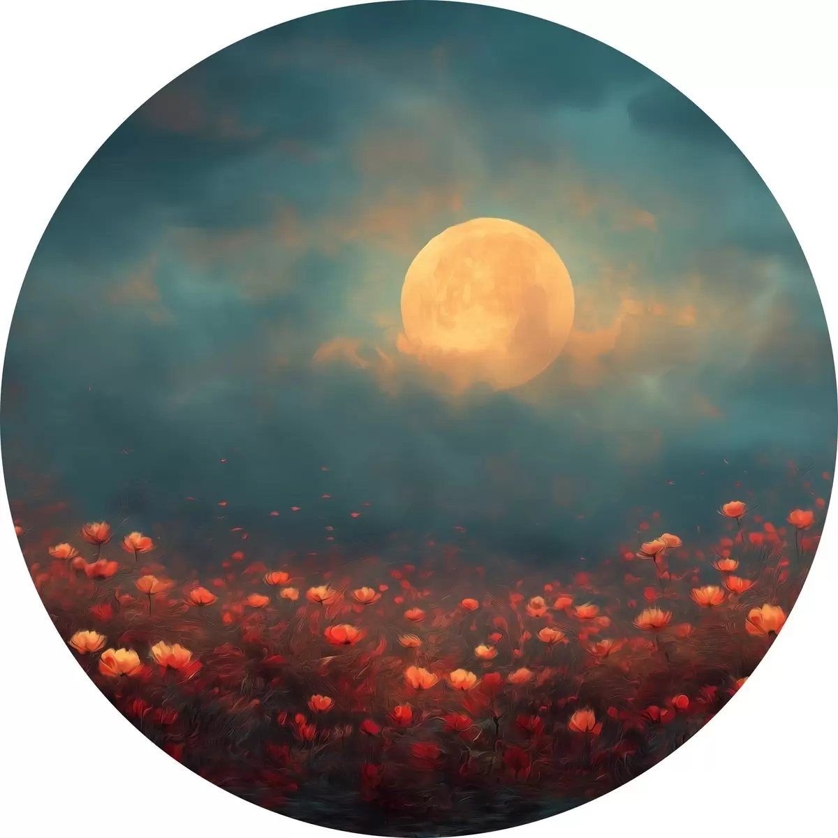 Obrázok Mesiac nad poľom červených kvetov na zamračenom večernom nebi Nr r46167