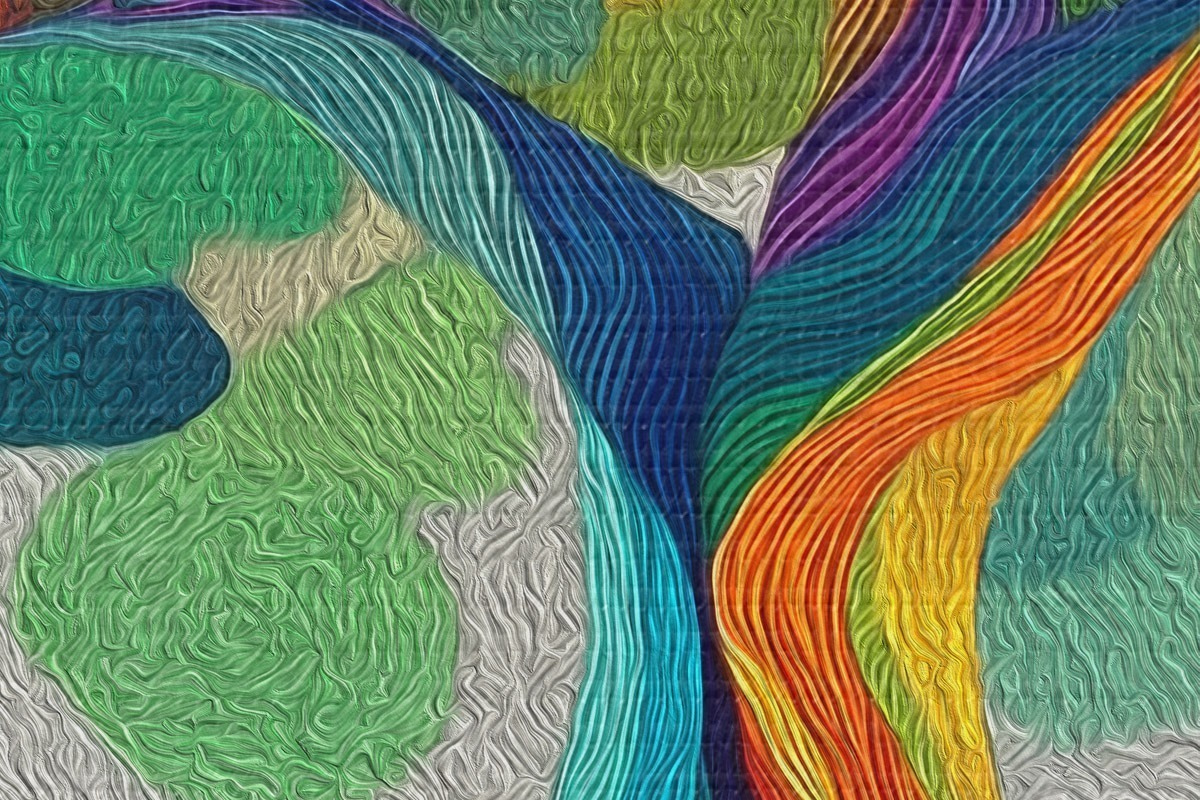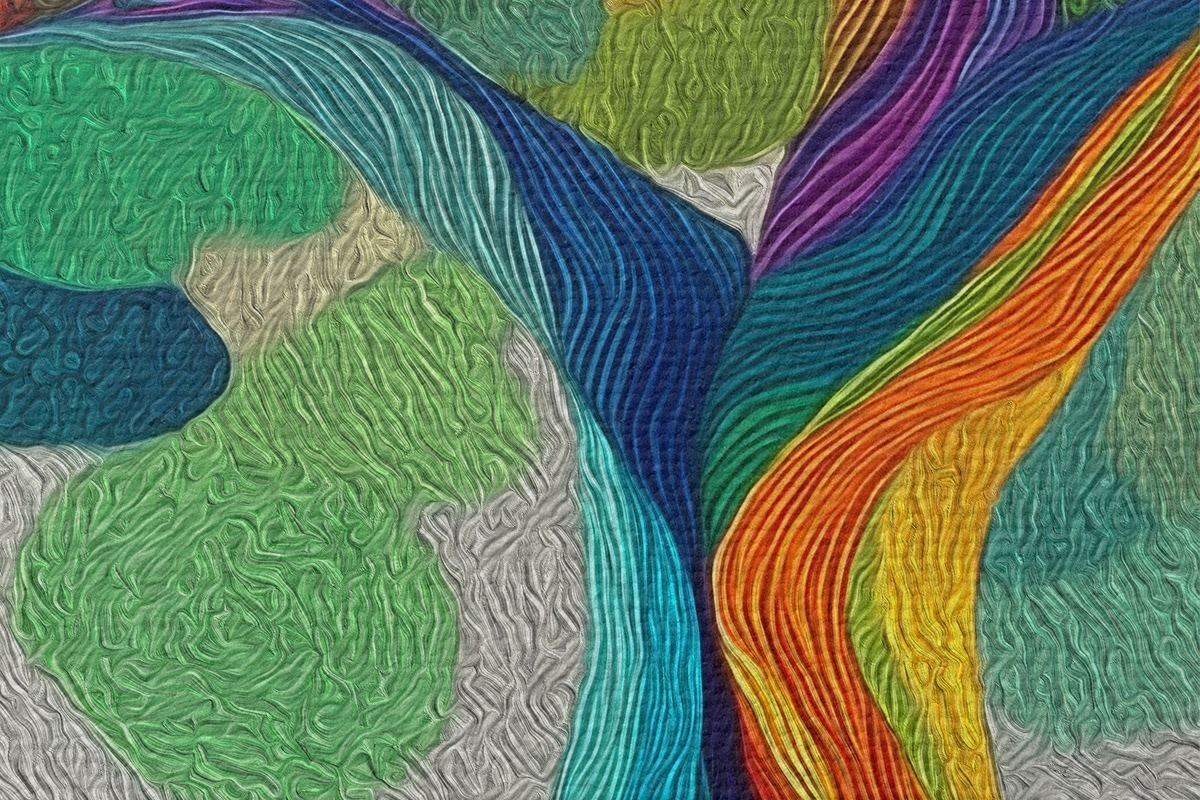 Obrázok Strom s dúhovými vetvami na zelenom pozadí Nr r46173