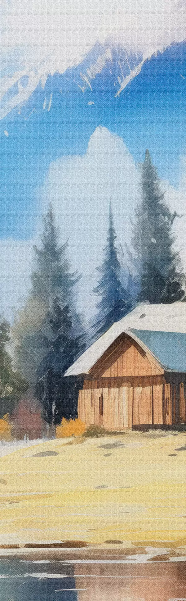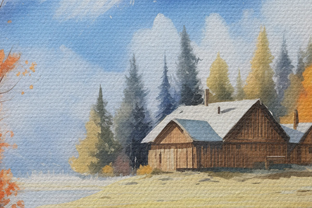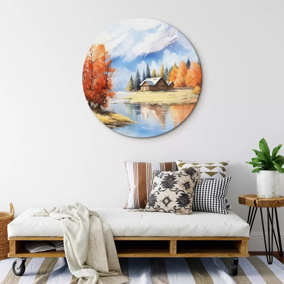 Obrázok Jesenná krajina pri jazere s domom a horami Nr r46184