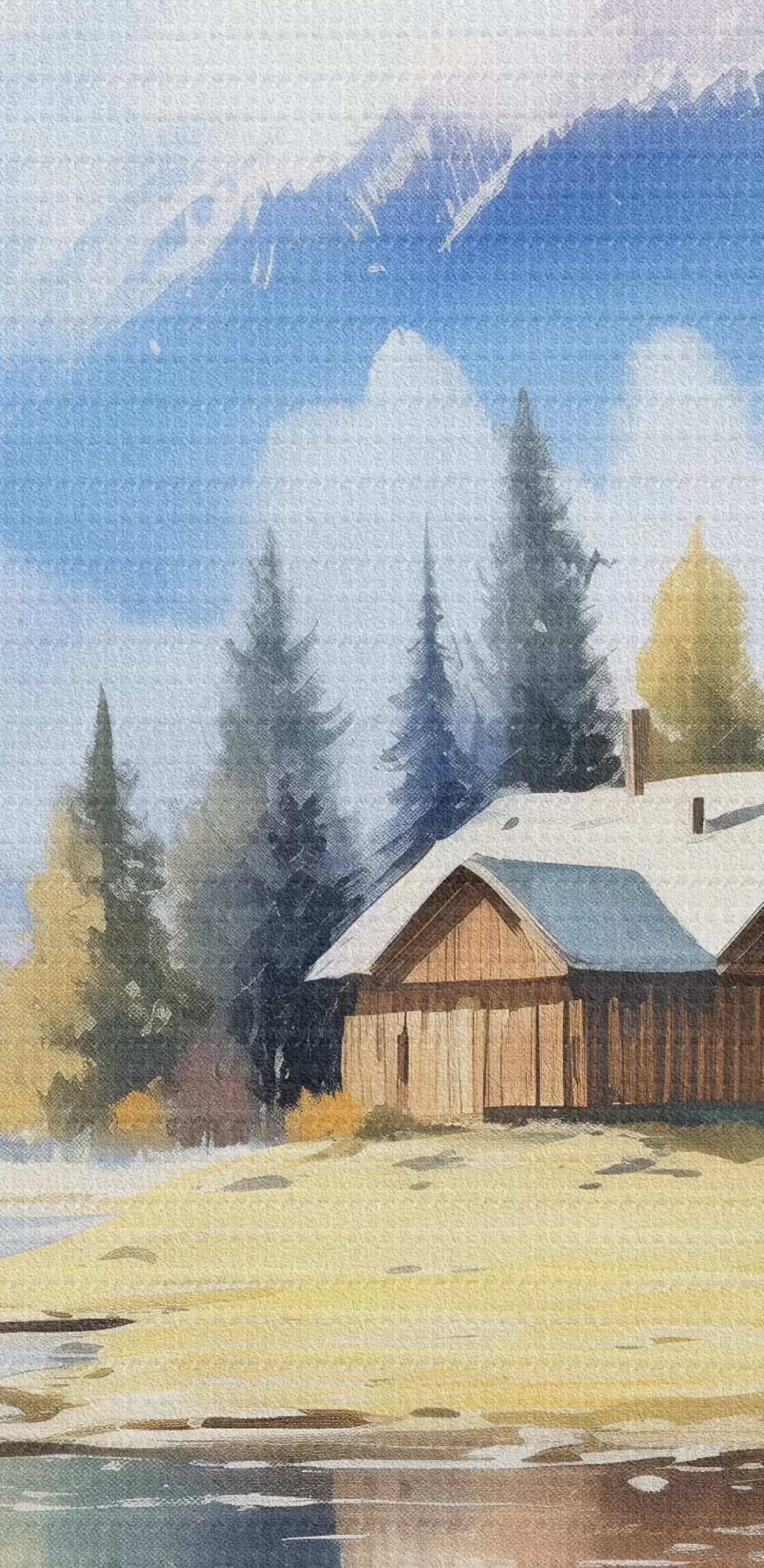 Obrázok Jesenná krajina pri jazere s domom a horami Nr r46184