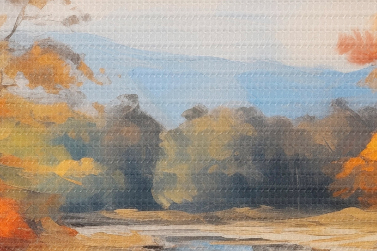 Obrázok Krajina s riekou tečúcou cez les na jeseň, žlté a oranžové stromy, maliarsky štýl Nr r46281