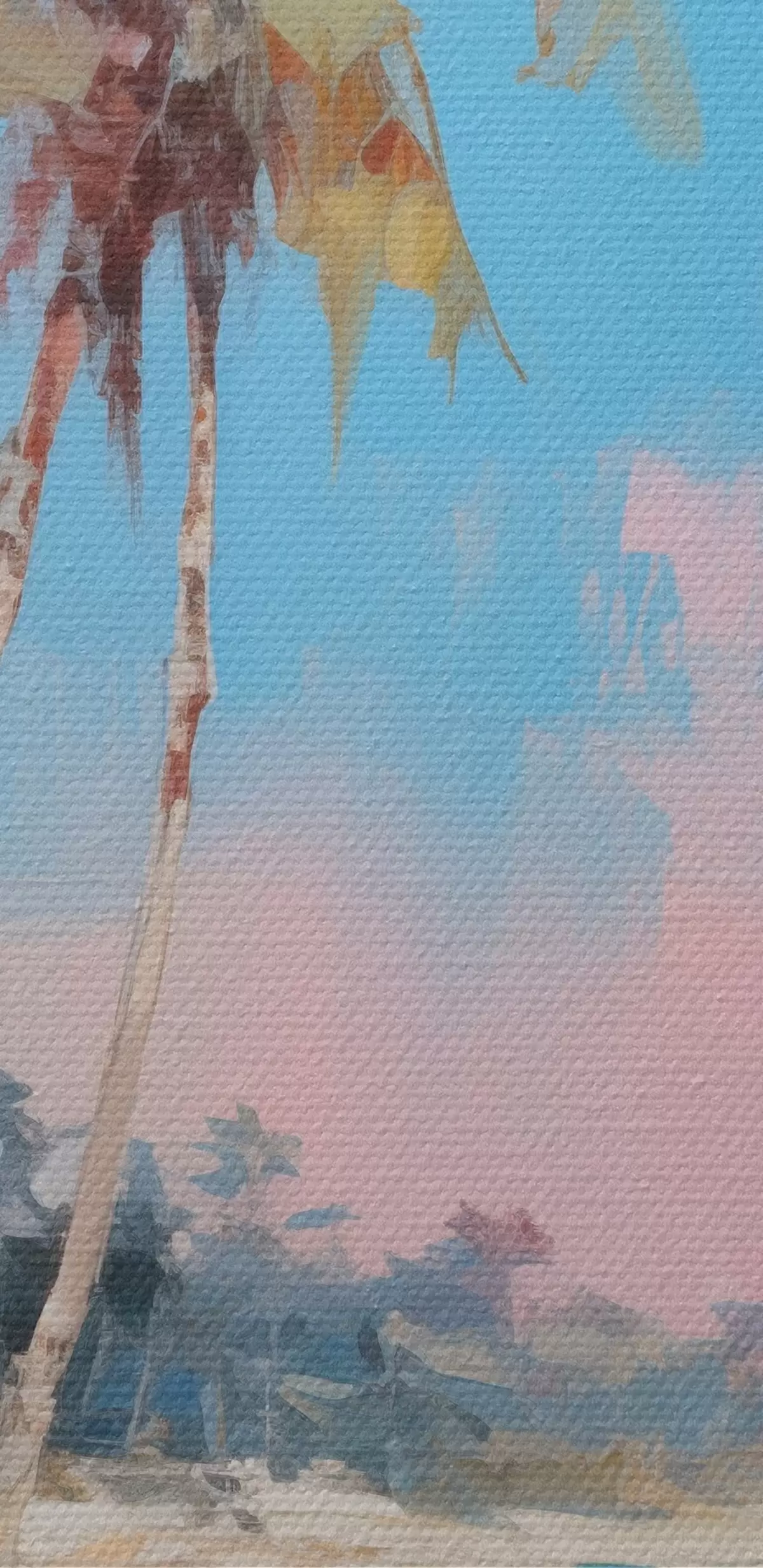 Obraz je možné zavesiť ihneď po jeho prevzatí. Obraz bude napnutý na drevených nosidlách so šírkou 2 cm.