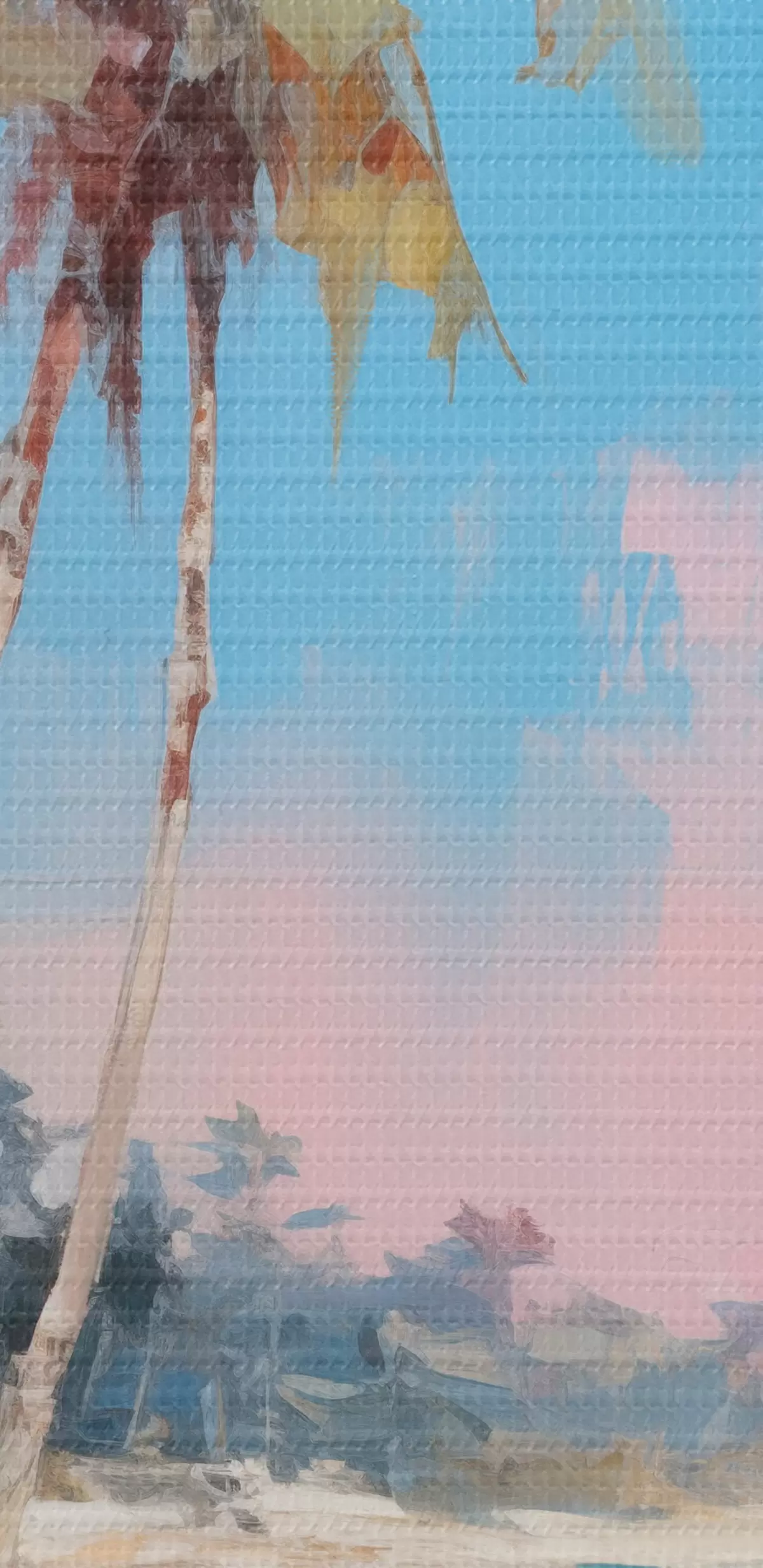 Obrázok Abstraktná tropická pláž s bielym pieskom a palmami, modrá obloha s bielymi mrakmi Nr r46285