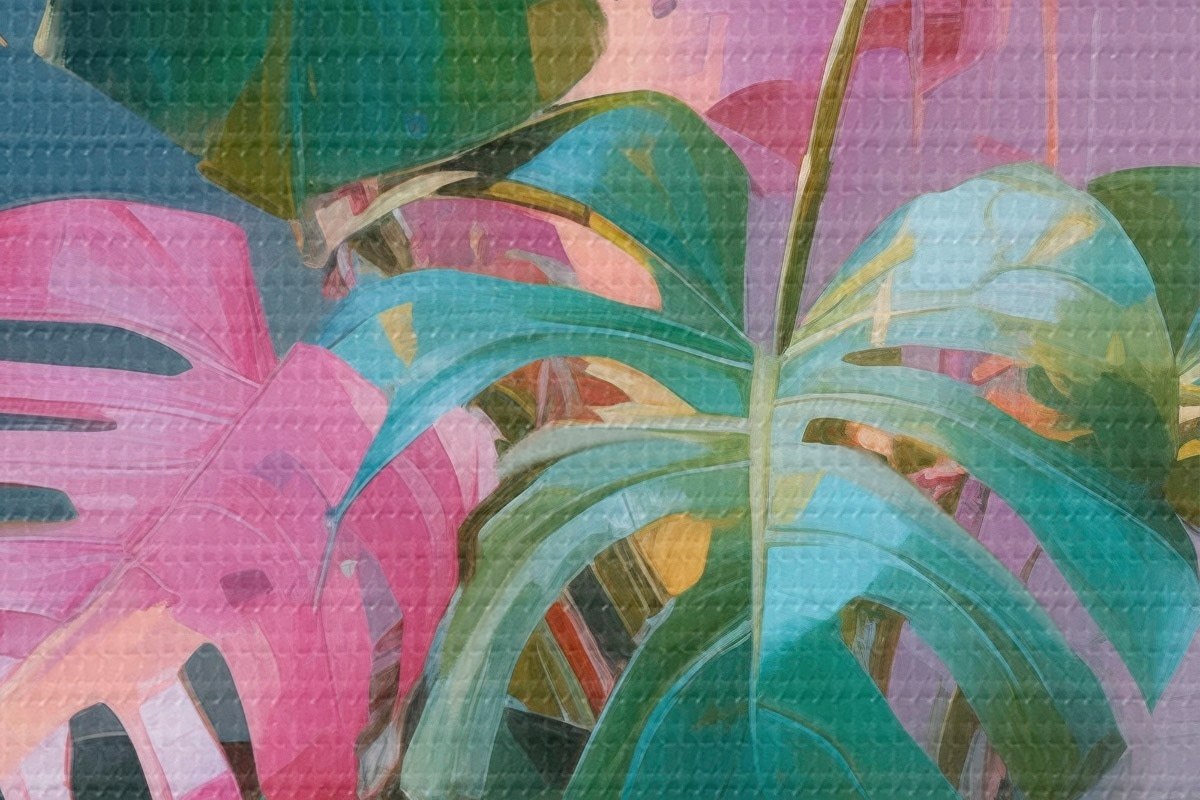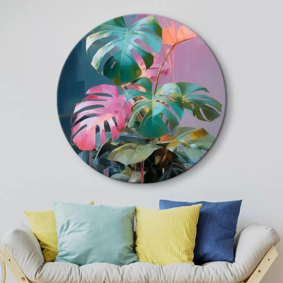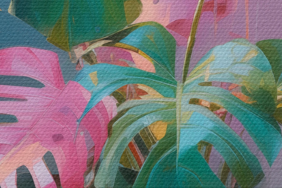 Obrázok Abstraktná rastlina monstera s ružovými a zelenými listami, žiarivými farbami, na rozmazanom pozadí Nr r46287