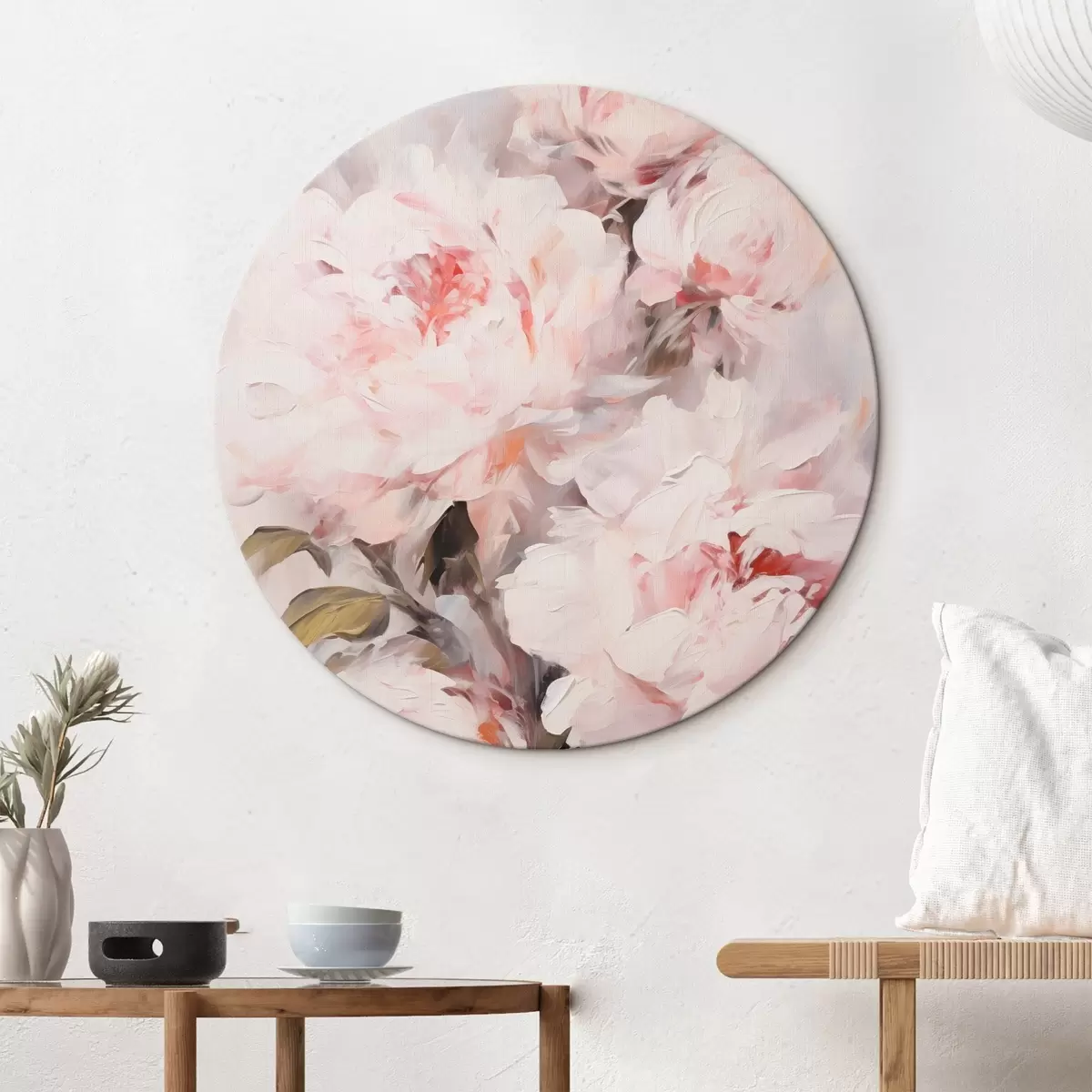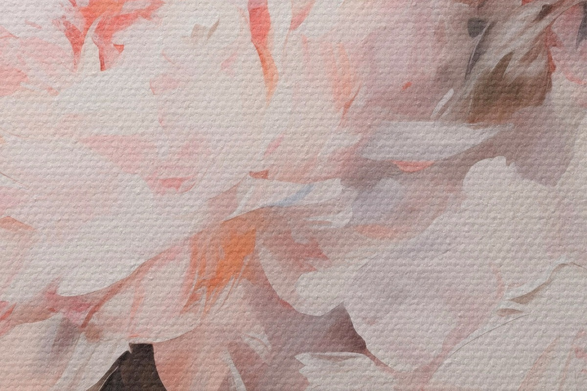 Obrázok Kytica svetloružových pivoniek so zelenými listami, jemnými ťahmi štetca, pastelovými farbami, na svetlom pozadí Nr r46294