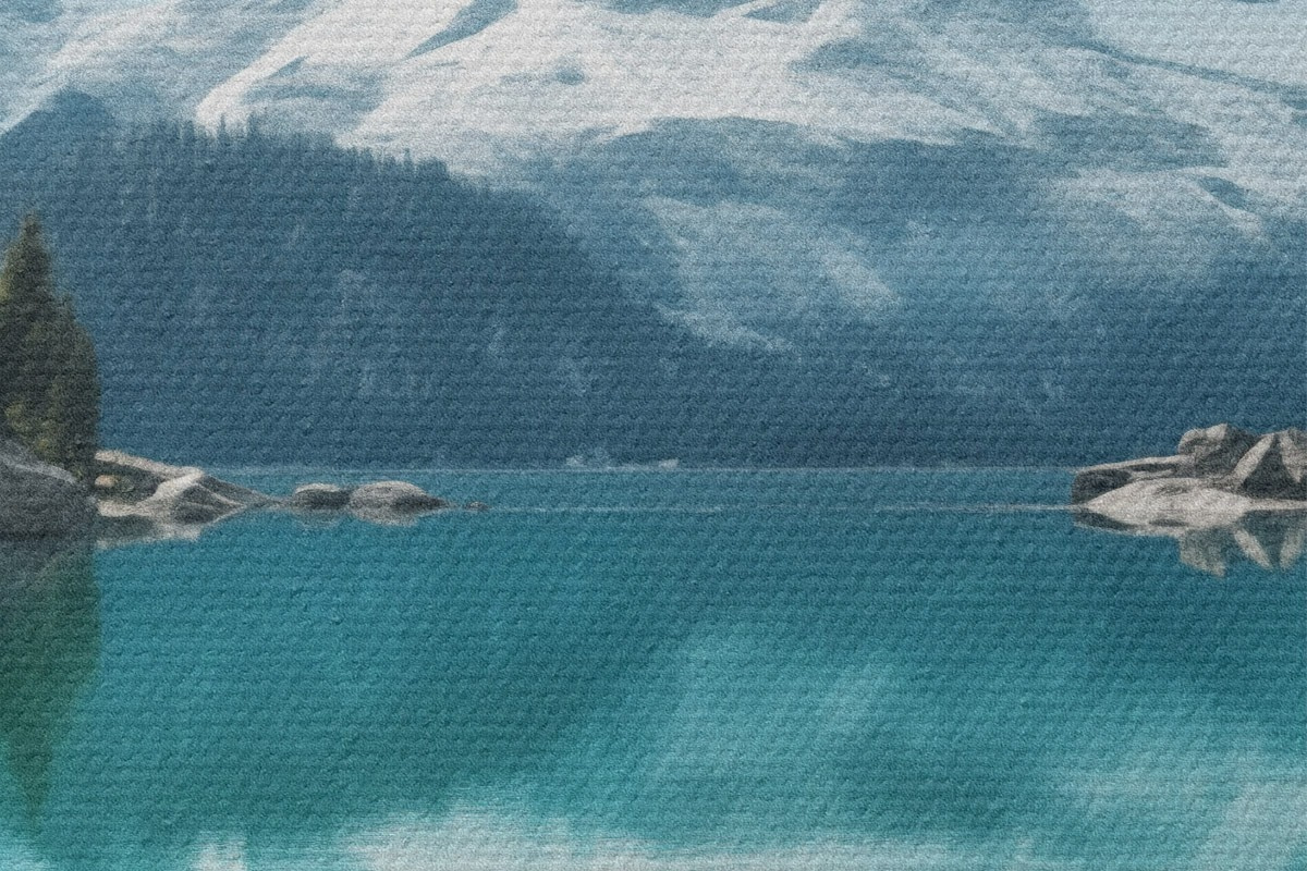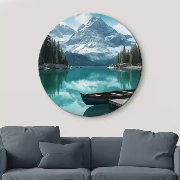 Obrázok Alpské jazero s kanoe a zasneženými vrcholmi Nr r46481