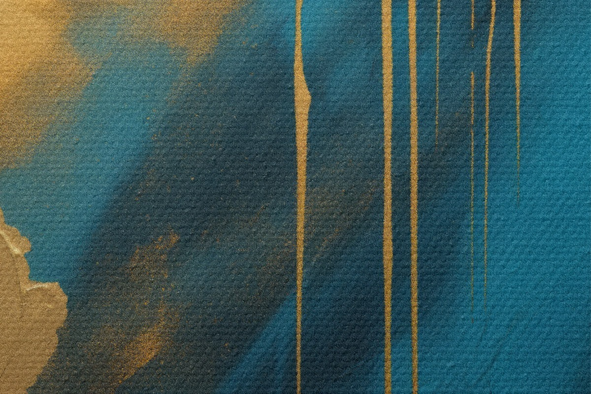Obrázok Tyrkysová a tmavomodrá abstrakcia s tečúcimi teplými odleskami Nr r46509