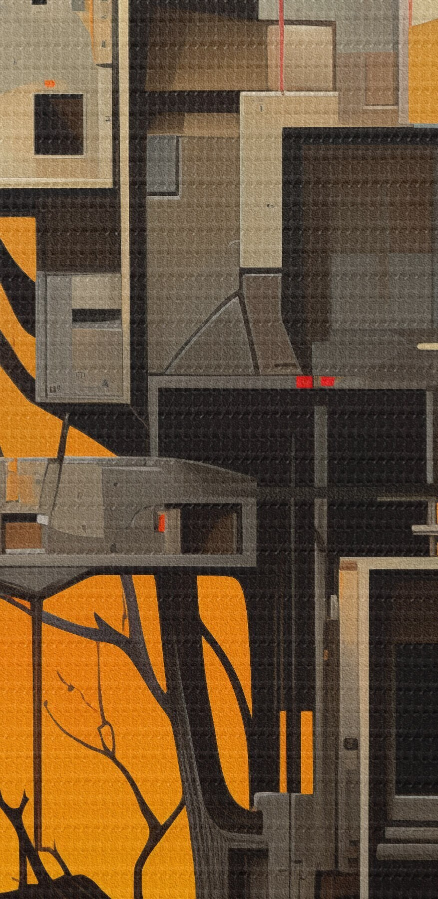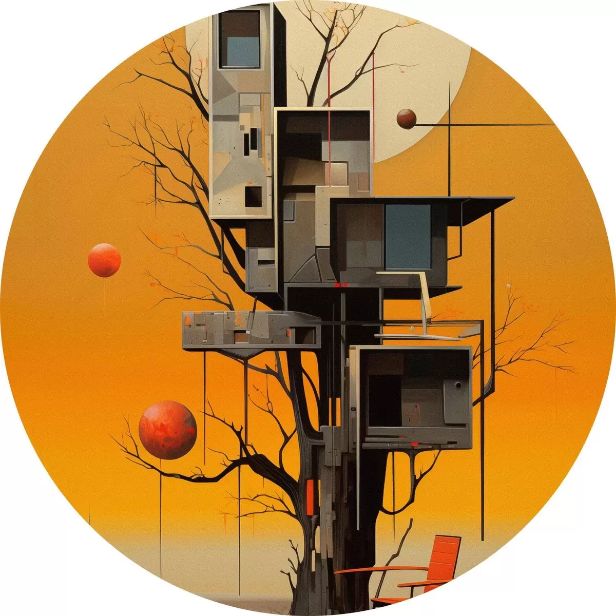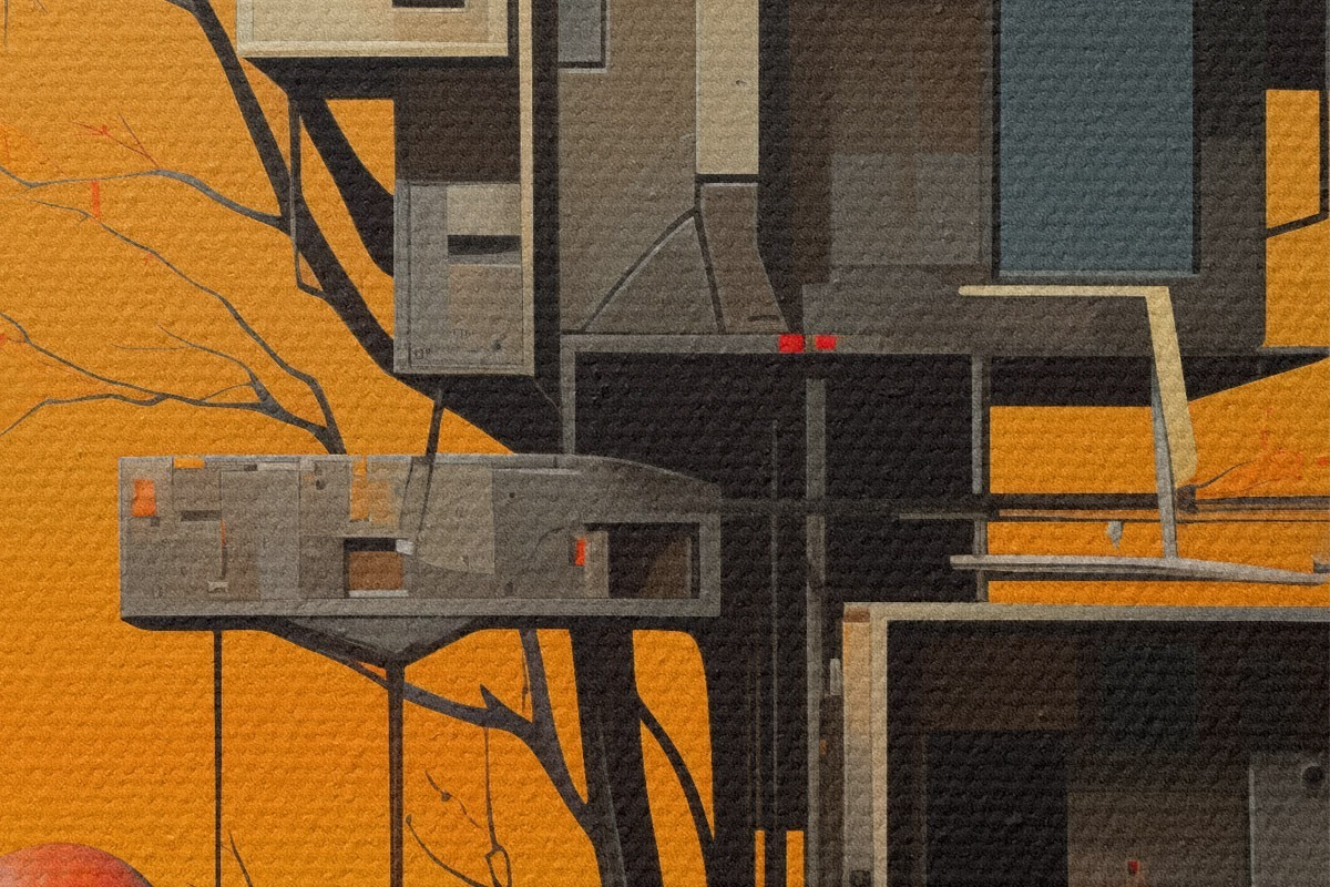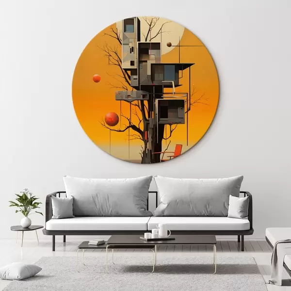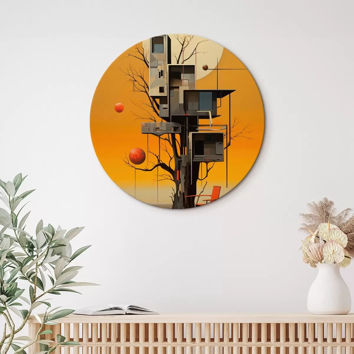Obrázok Surrealistický domček na strome na oranžovom pozadí Nr r46526