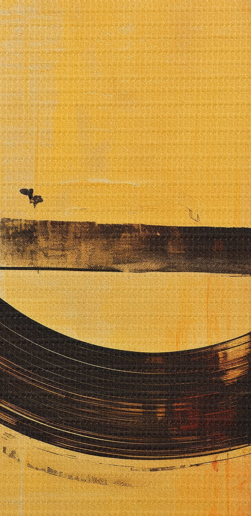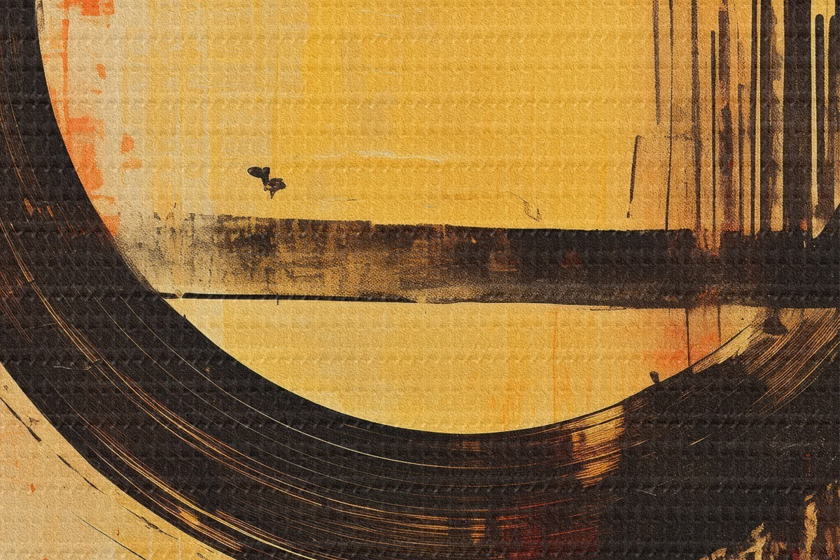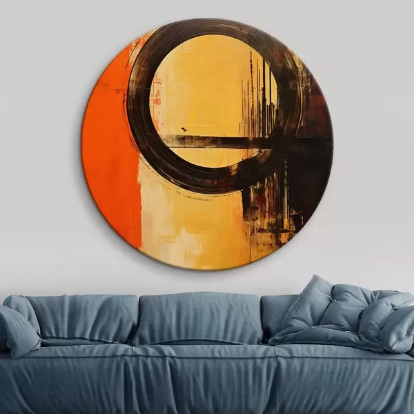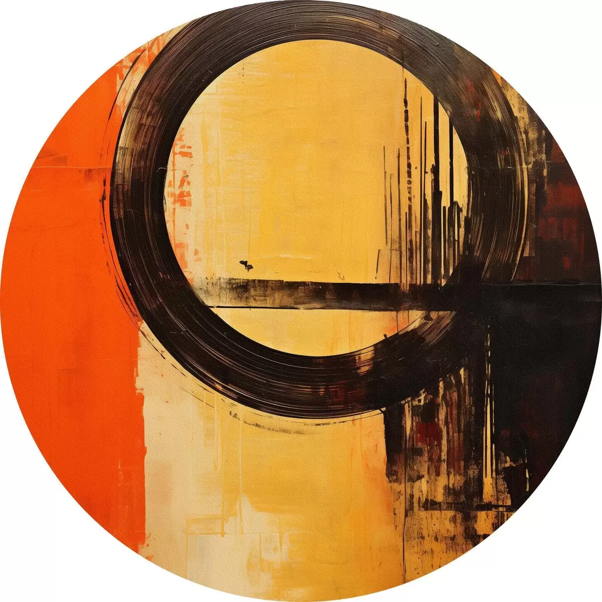 Obrázok Abstraktný motív s čiernym prstencom na terakotovo-pieskovom pozadí Nr r46529