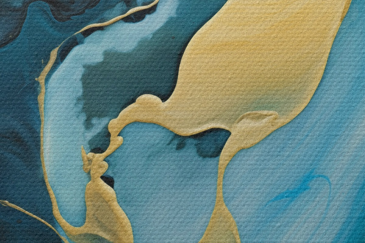Obrázok Tyrkysovo-modrá abstrakcia s prúdom okrovej farby Nr r46530