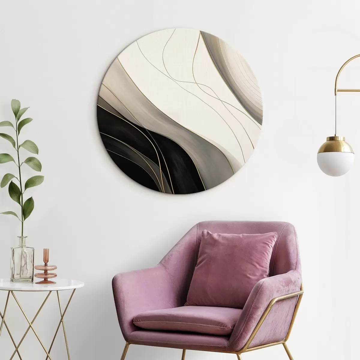 Obrázok Vlny v čiernej a béžovej farbe s jemnými okrovými čiarami Nr r46541