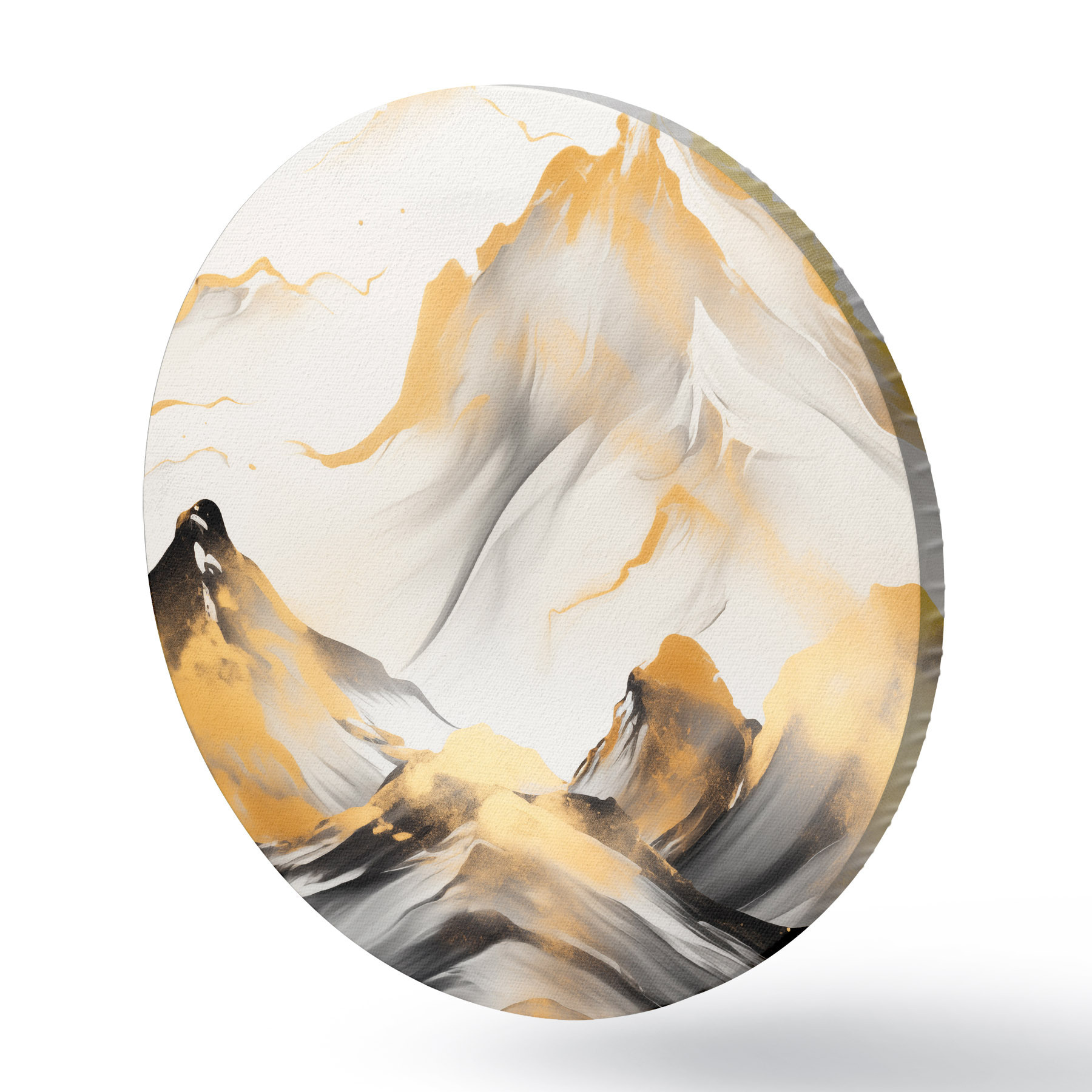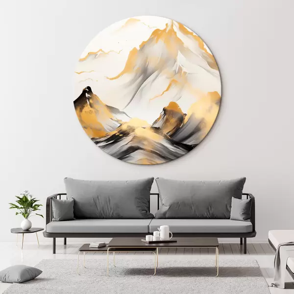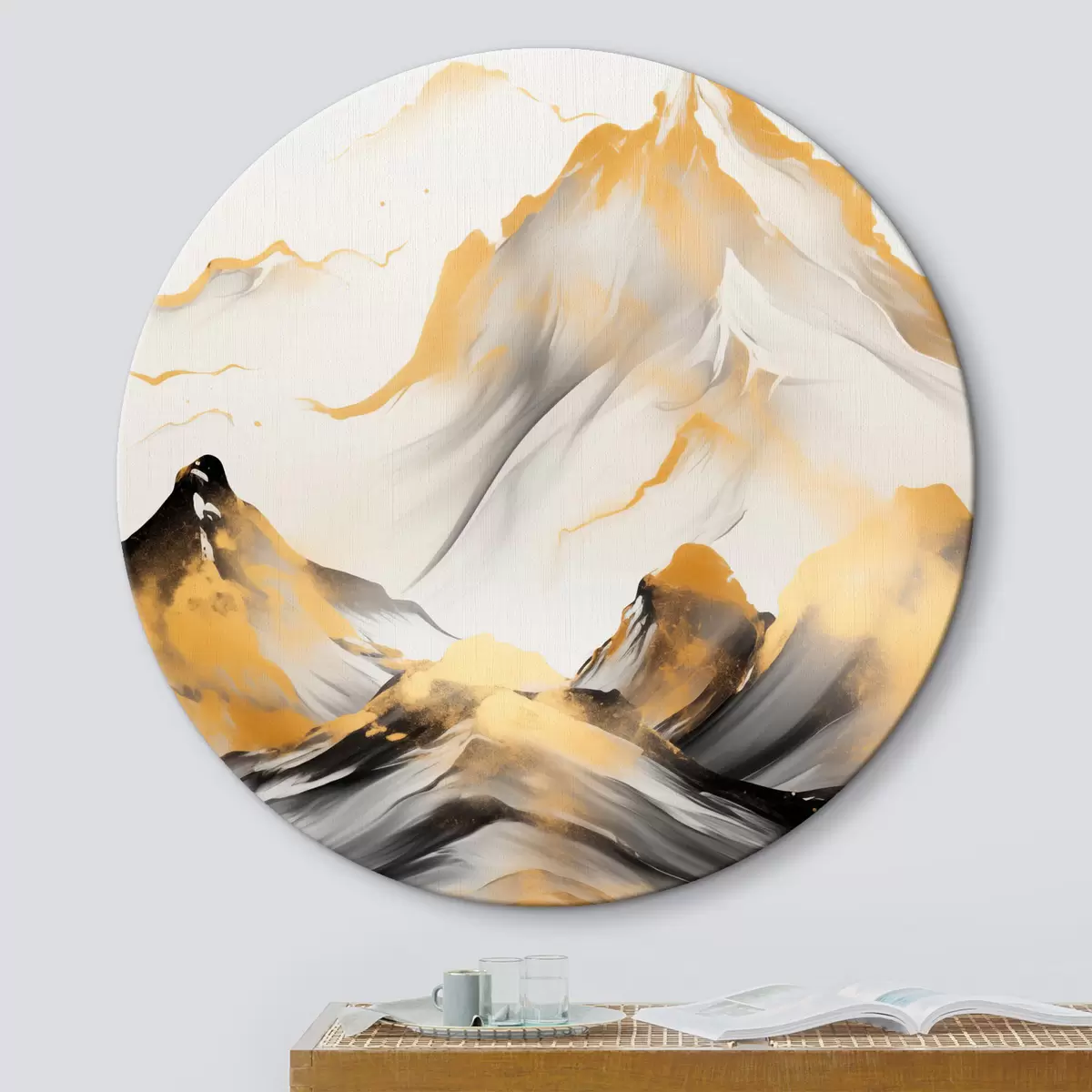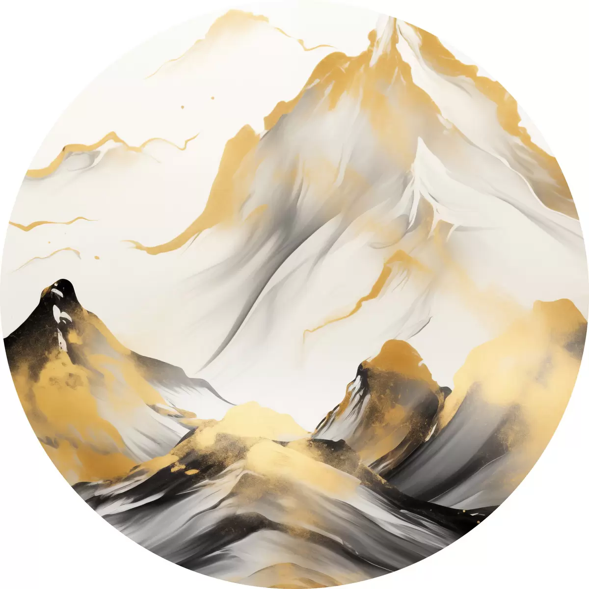 Obrázok Textúrované žlté a čierne hory so zasneženými vrcholmi, štýl maľby tušom, minimalistické pohorie Nr r46683