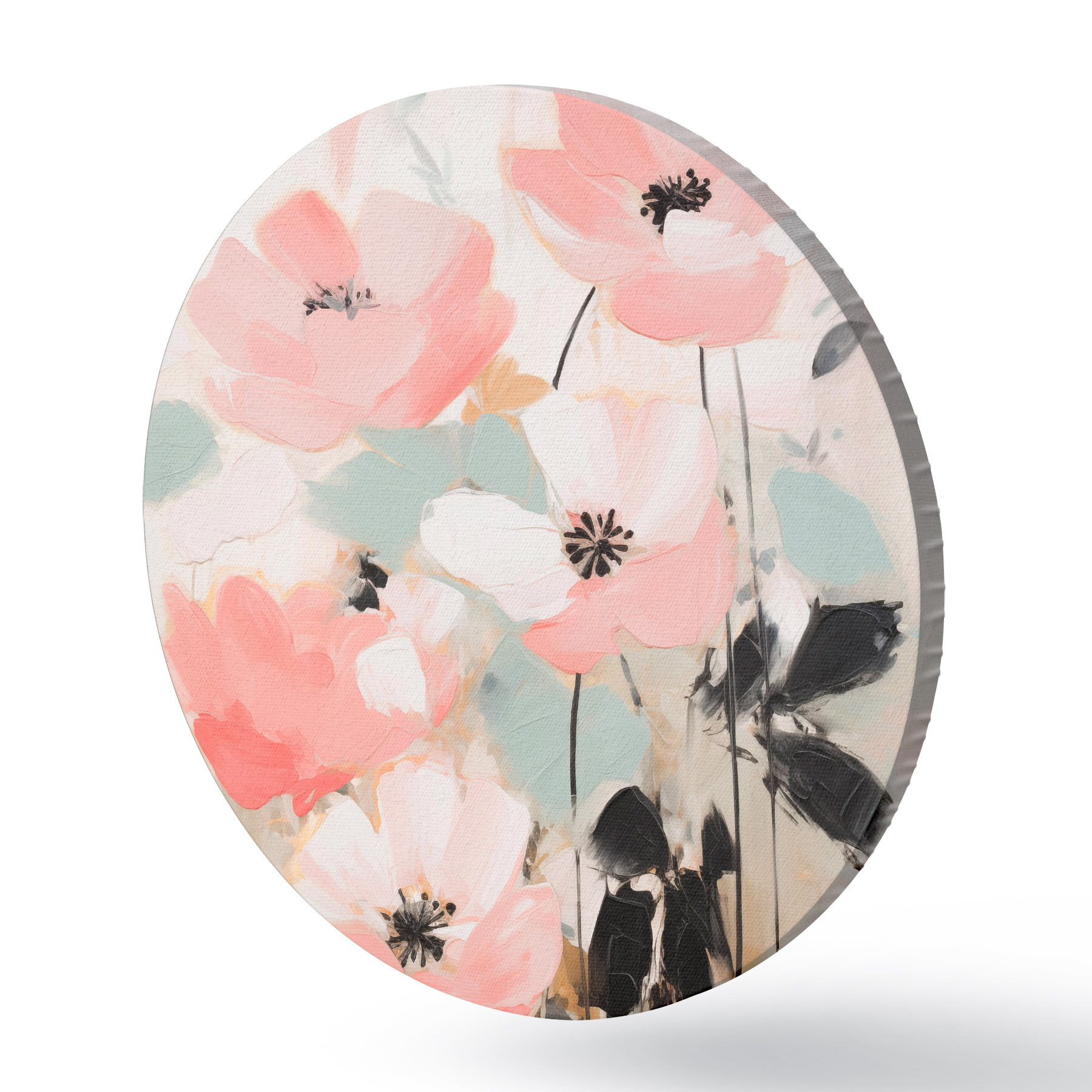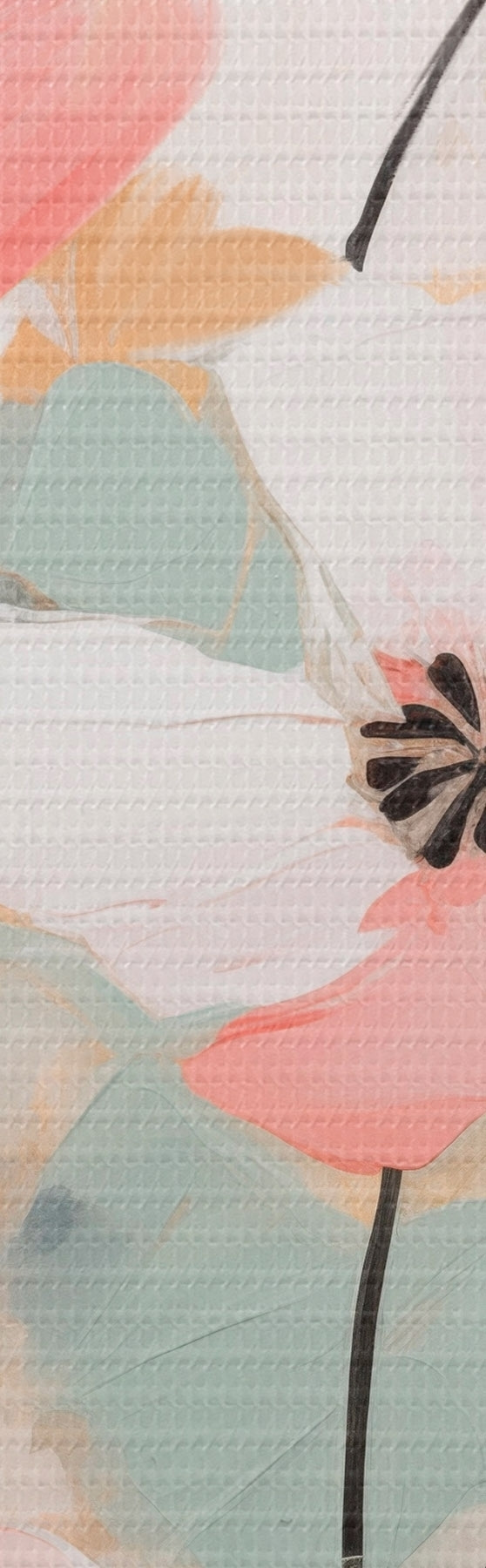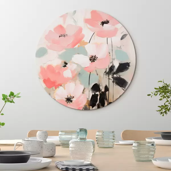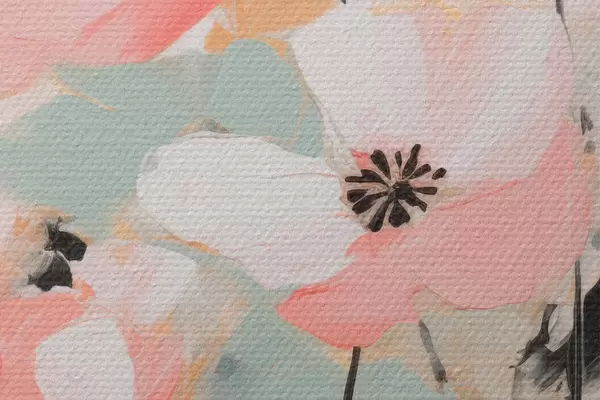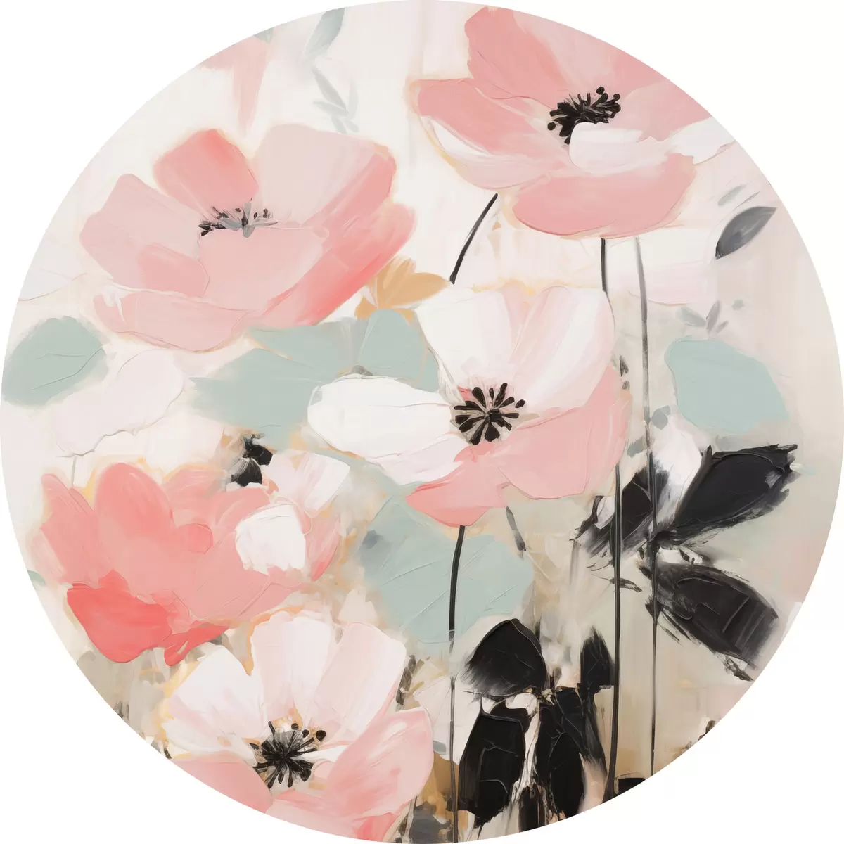 Obrázok Ružové a čierne kvety s listami, jemné pastelové farby, abstraktná kvetinová kompozícia, minimalistické umenie Nr r46688