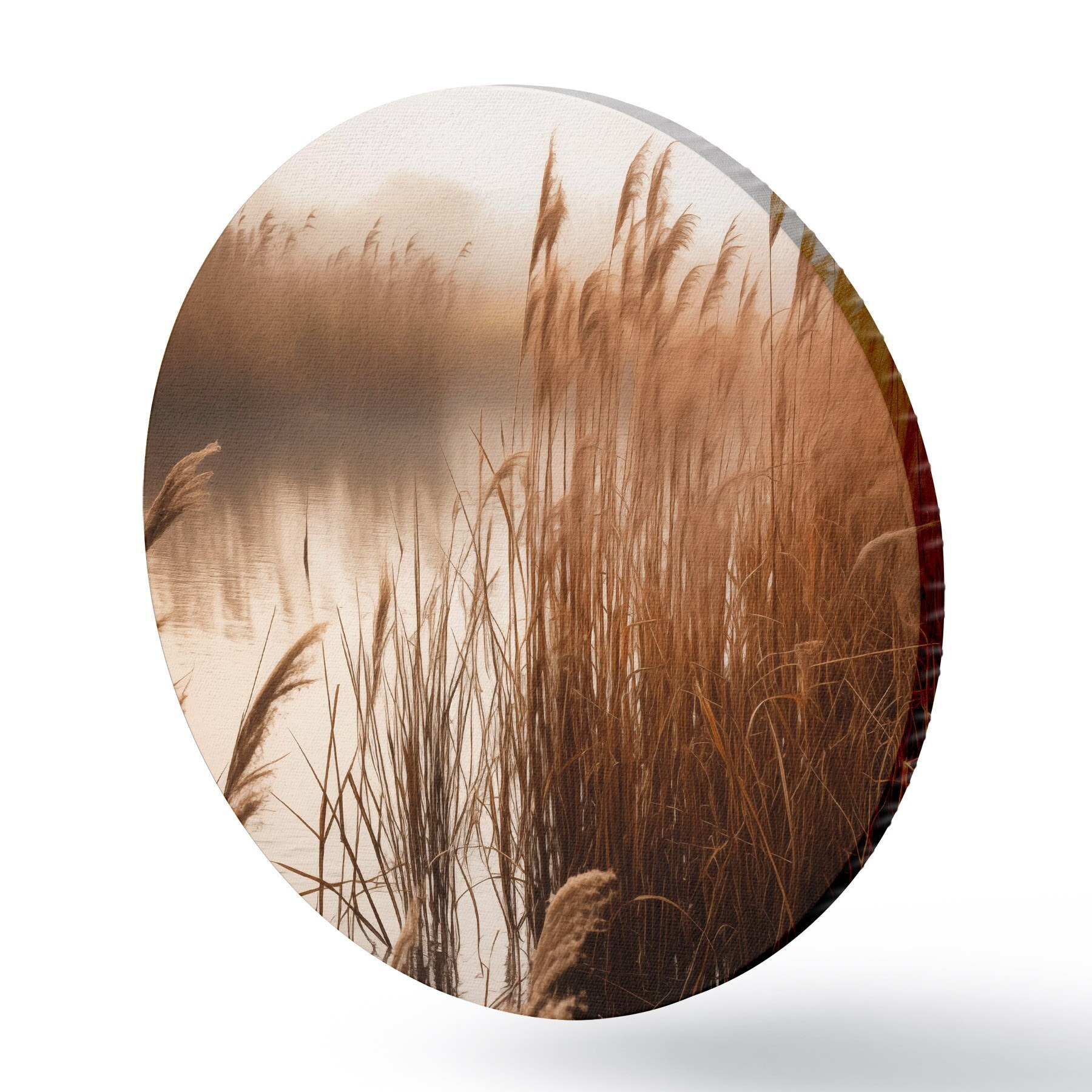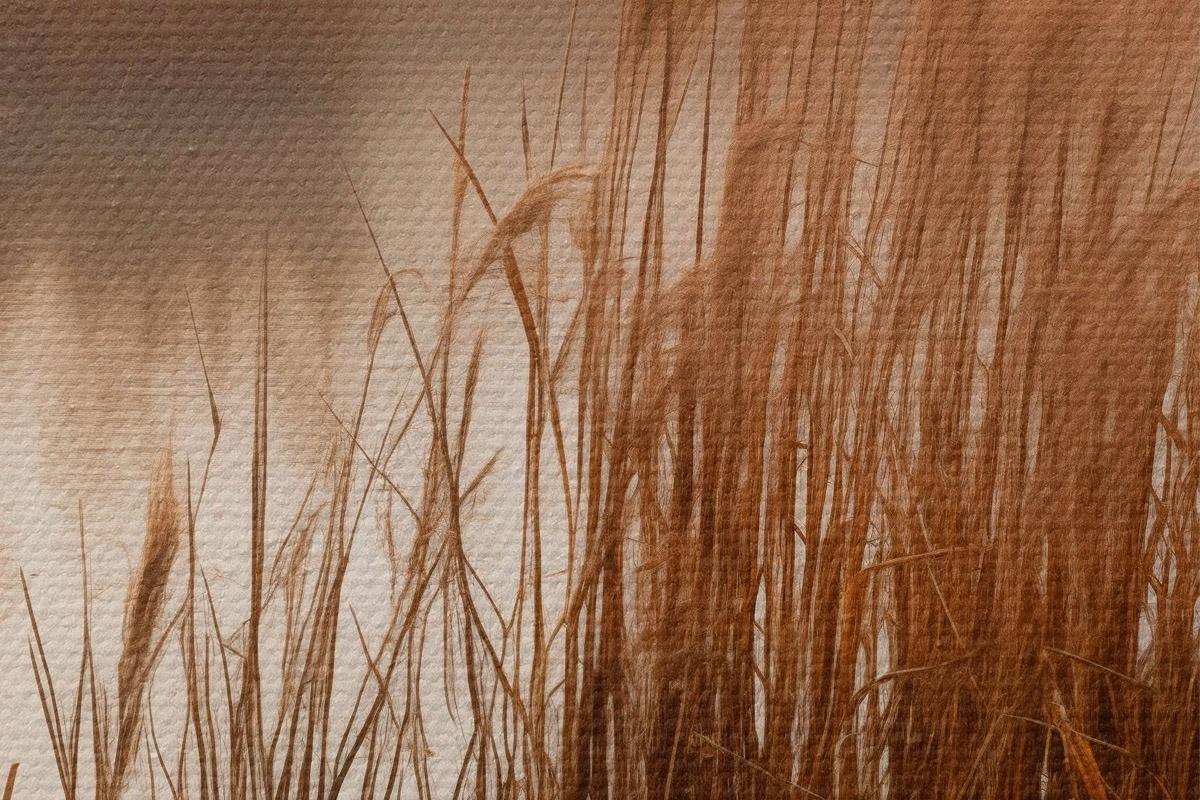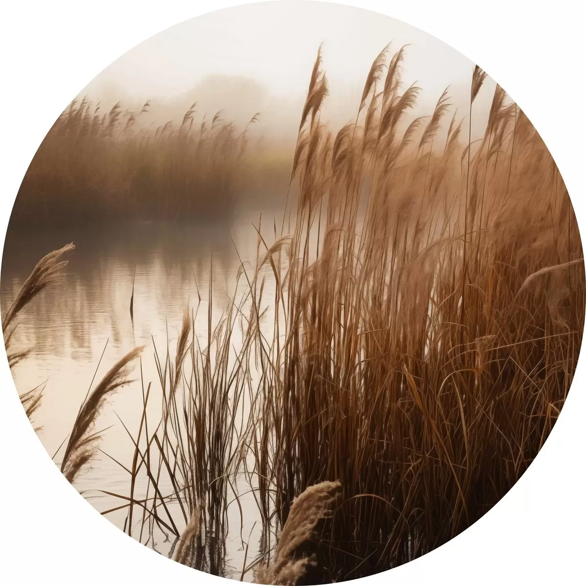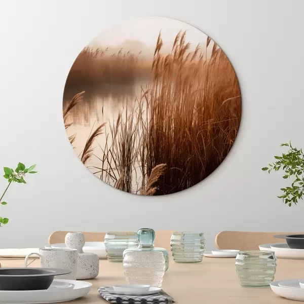 Obrázok Vysoké trstiny rastúce vo vode, voda odráža trstiny, hmlisté pozadie, mäkké svetlo, prírodná scéna Nr r46695
