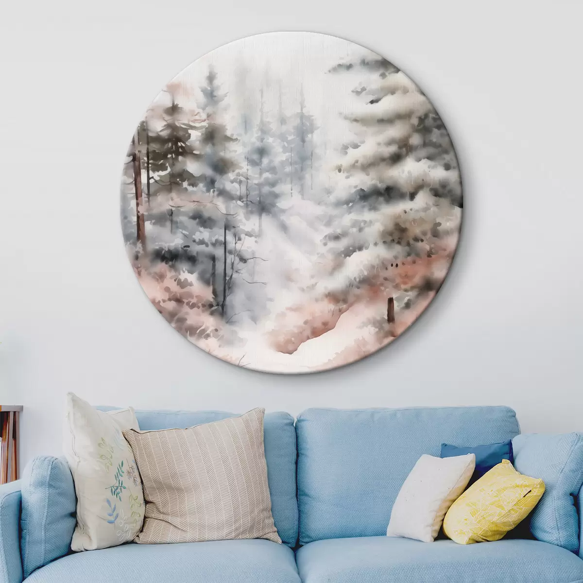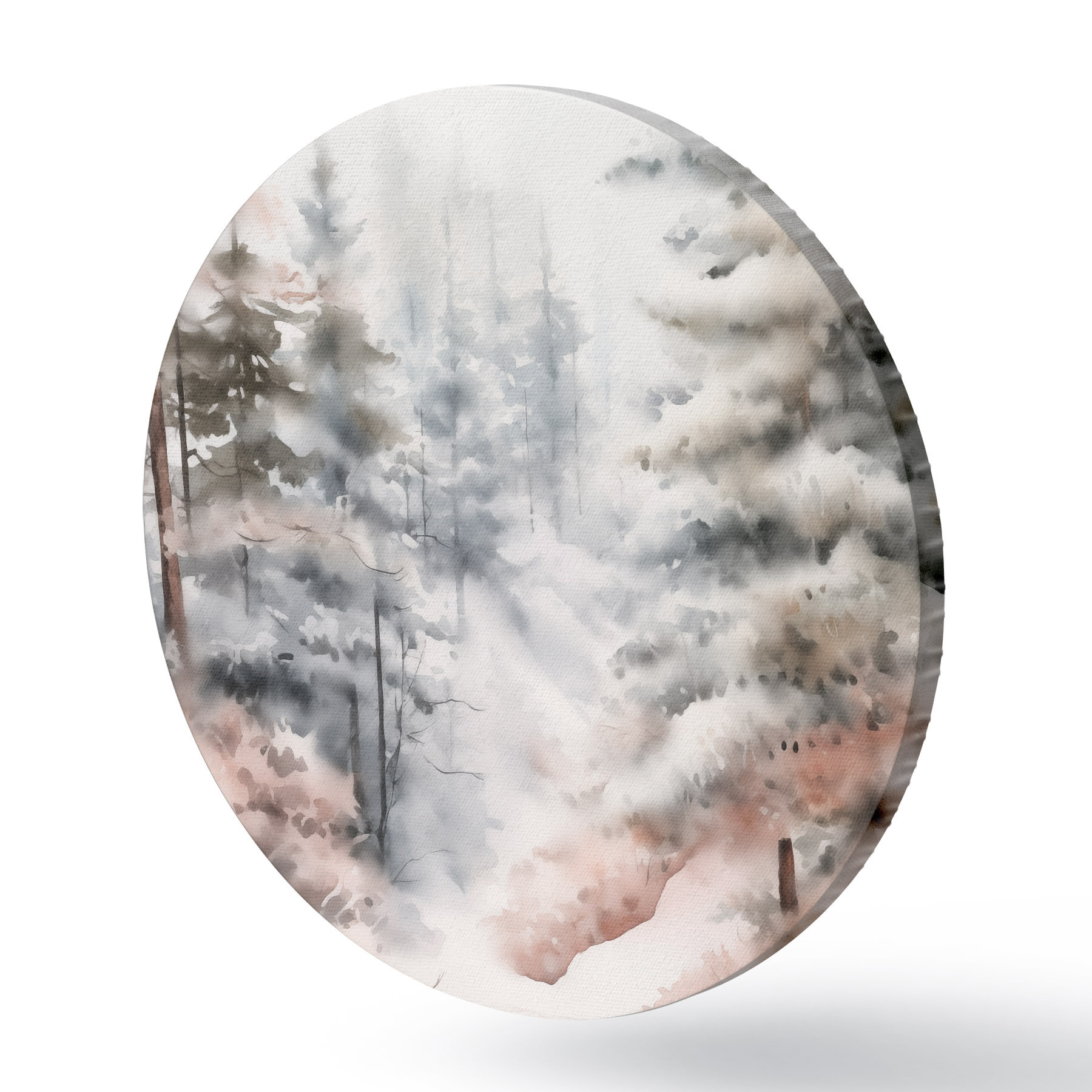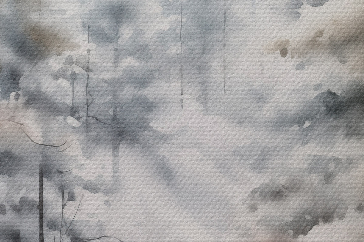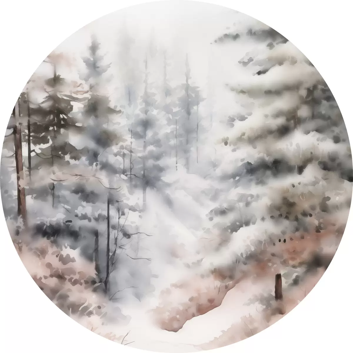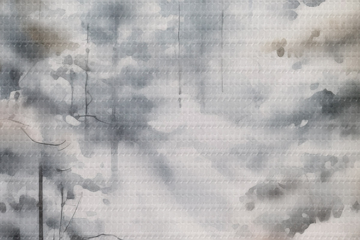 Obrázok Vysoké borovice pokryté snehom, stojace v hmlistom lese, jemná, tlmená zimná scéna Nr r46702