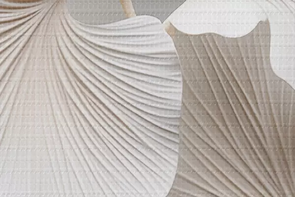 Obrázok Biele listy ginkgo biloba s detailnými žilkami, jemným osvetlením, textúrovaným elegantným a minimalistickým dizajnom Nr r46705
