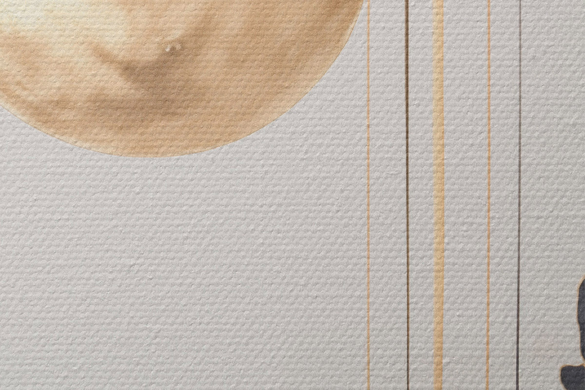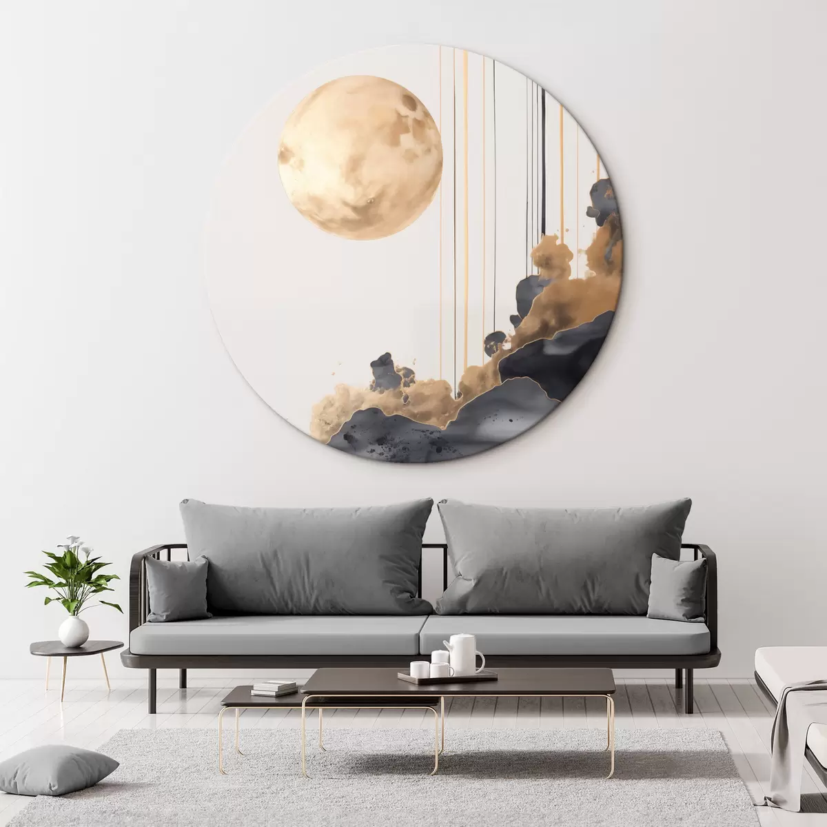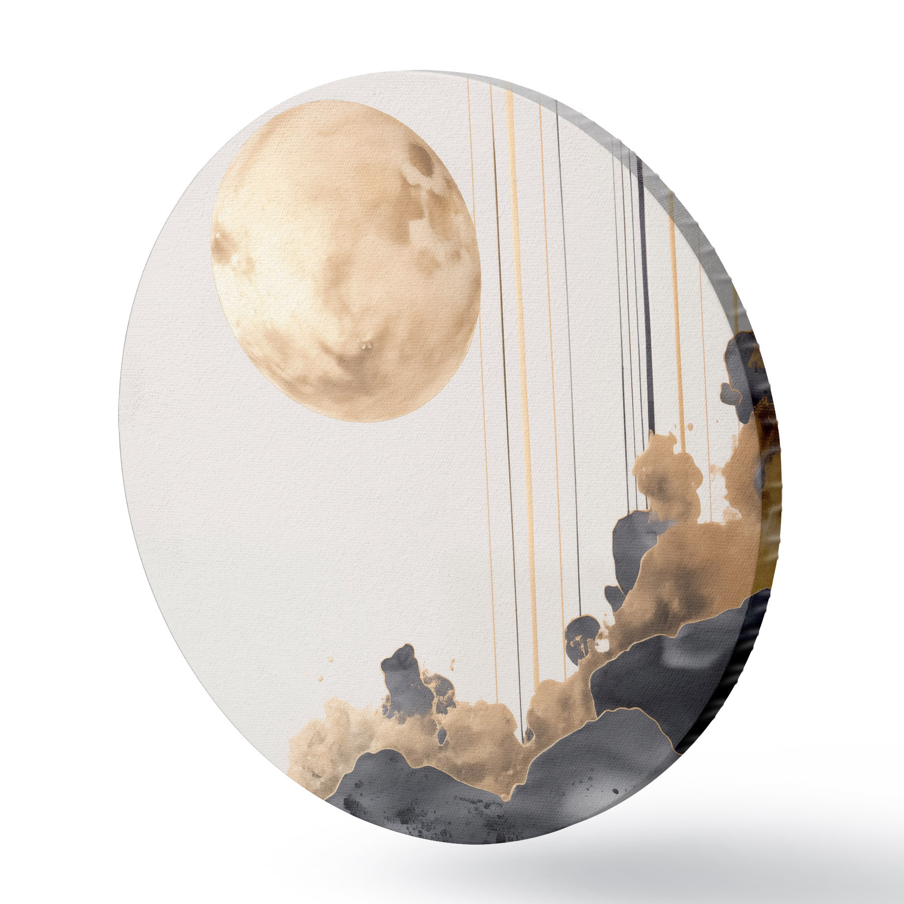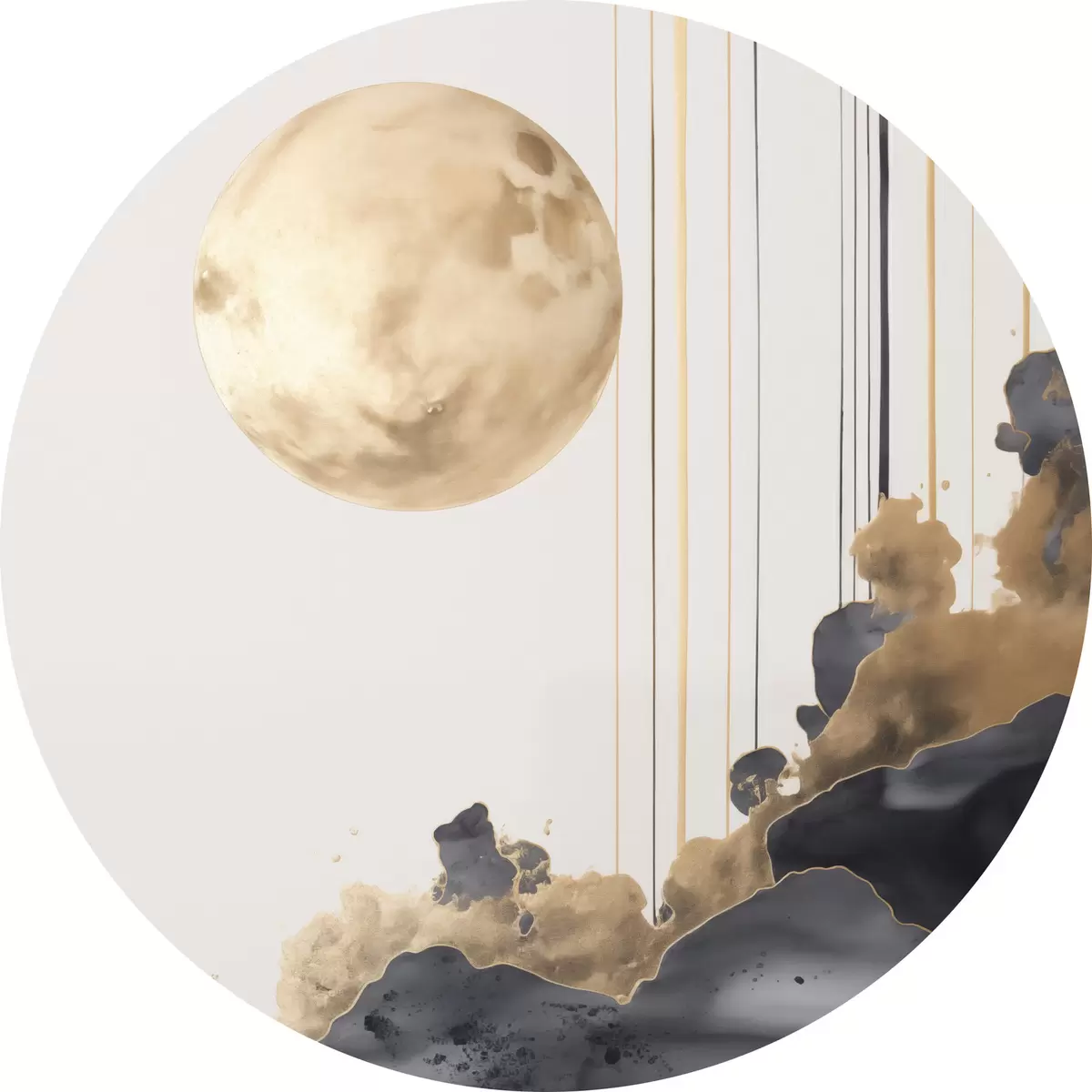 Obrázok Úplný mesiac s čiernymi a textúrovanými žltými mrakmi, vertikálnymi čiarami, abstraktným štýlom, minimalistický a moderný Nr r46707