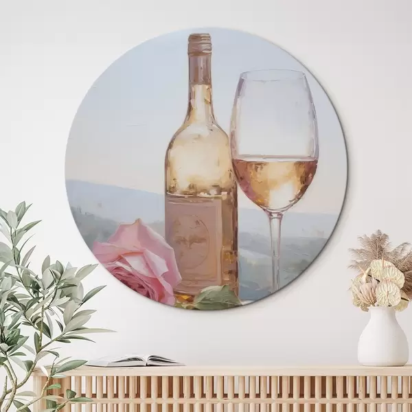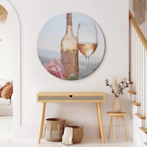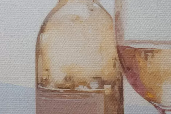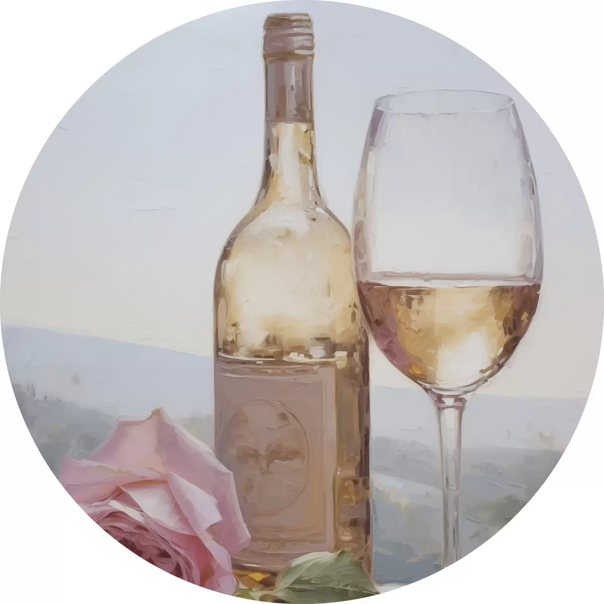 Obrázok Fľaša a pohár vína a malý pes s okuliarmi, imitácia maľby Nr r46721